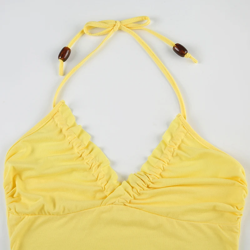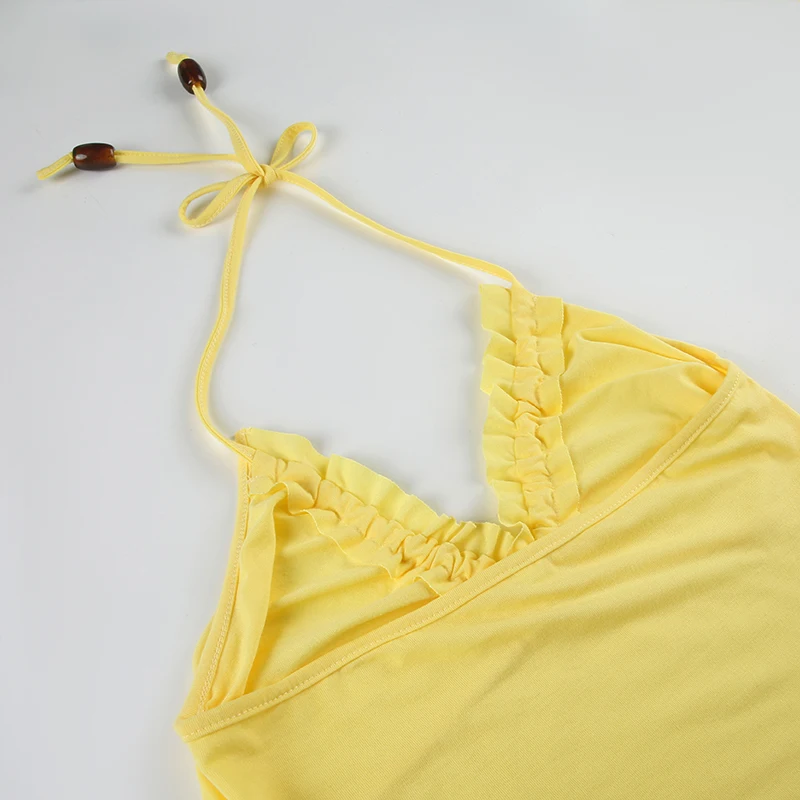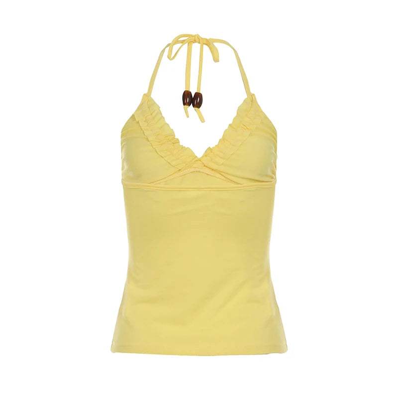 Fashion Solid Edible Tree Fungus V-Neck Halter Tops Simple Basic Retro Women Blouses Slim Fit