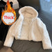 Bxoxo Faux Fur Lamb Hooded Jacket Women Winter Thick Warm Hairy Crop Coat Y2K Loose Streetwear Long Sleeve Zipper Fur Outerwear