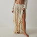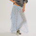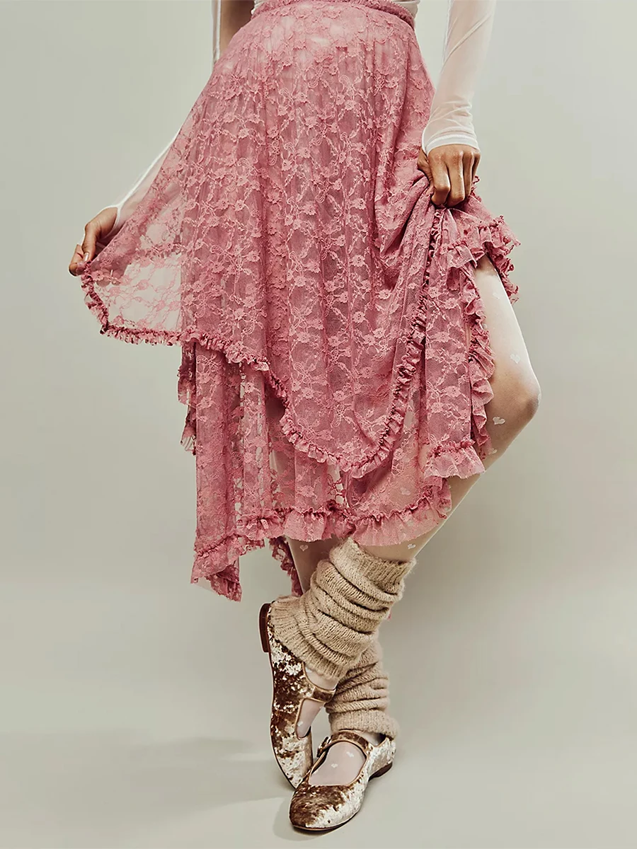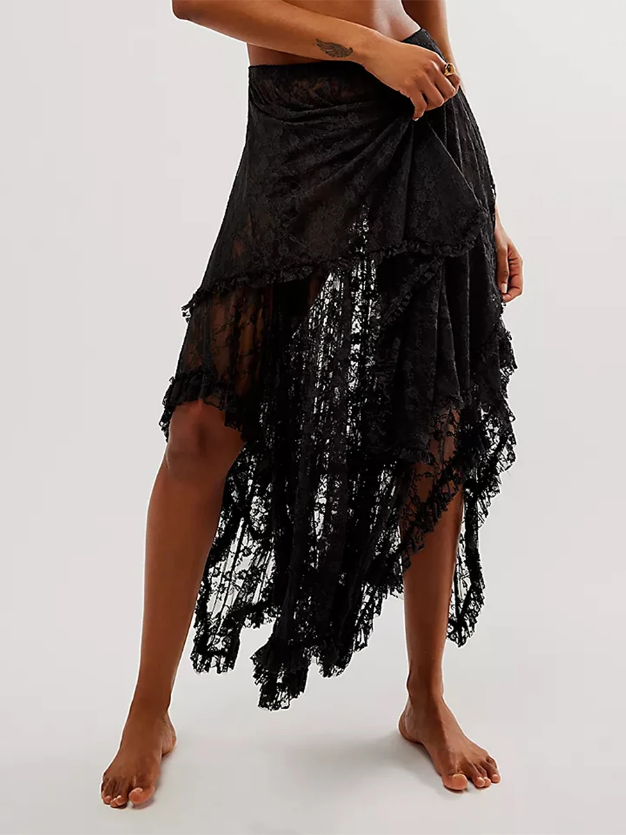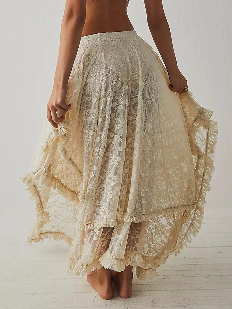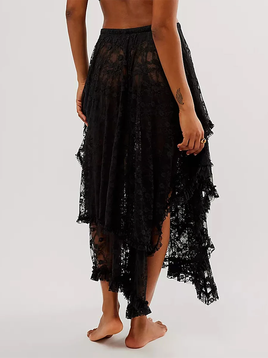 BXOXO Floral Lace Long Skirt for Women Y2K Elastic Waist Asymmetrical Layered Maxi Skirt Sexy See Through Flowy Beach Skirt