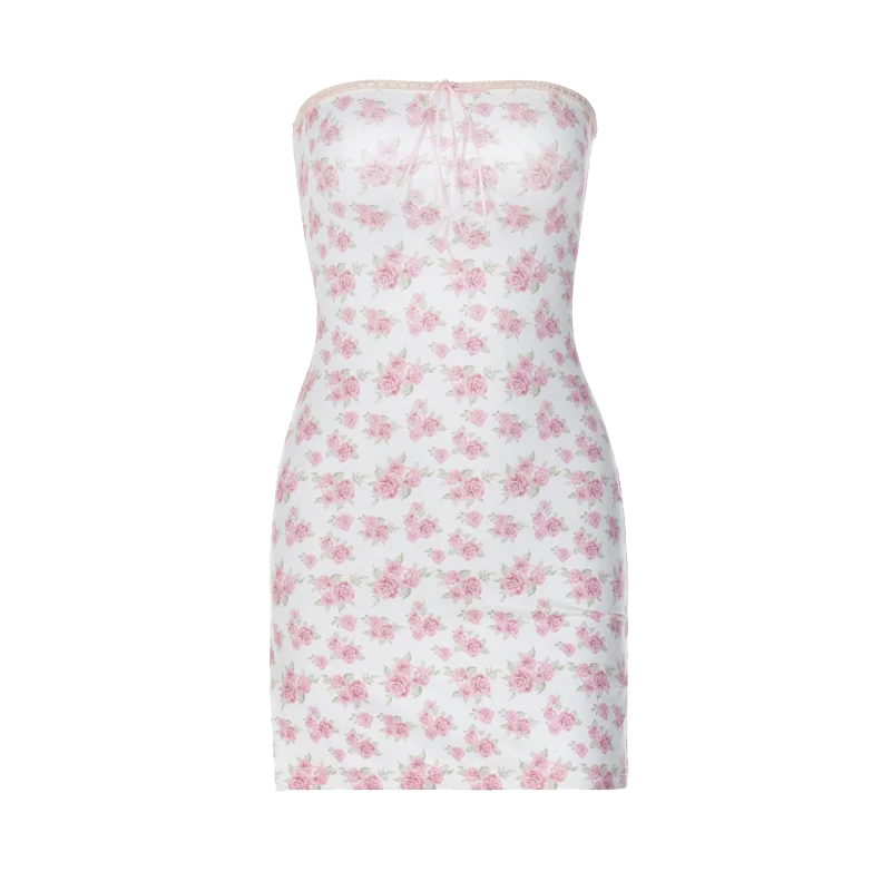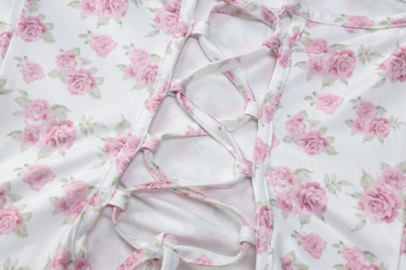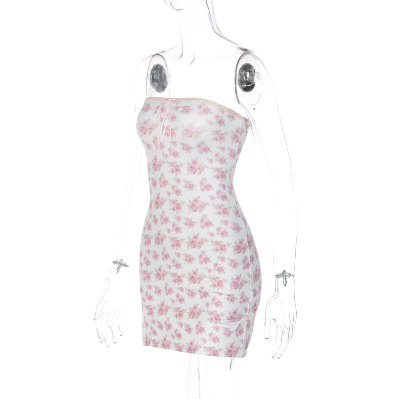 BXOXO Floral Print Strapless Backless Lace Up Sexy Bodycon Mini Prom Dress Summer Women Fashion Outfit Beach Party Vacation