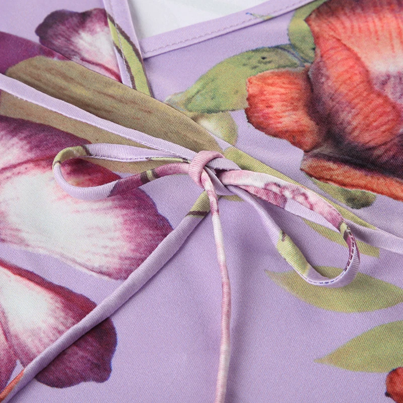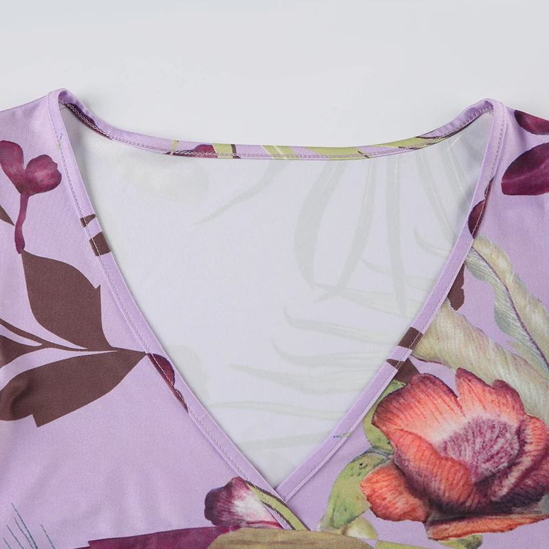 BXOXO Flower Prints V-Neck Butterfly Sleeve Slim Fit T-Shirts Summer Fashion Chic Design Blouses