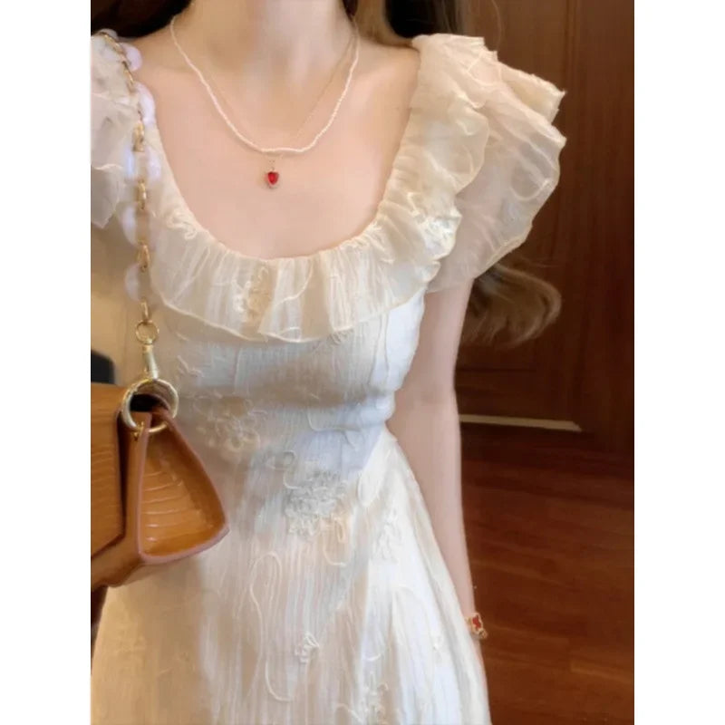 BXOXO French Style Solid Color Summer Dress Women's Knee-Length Sleeveless Holiday Beach Vacation Skirt Short Flounce Sleeve