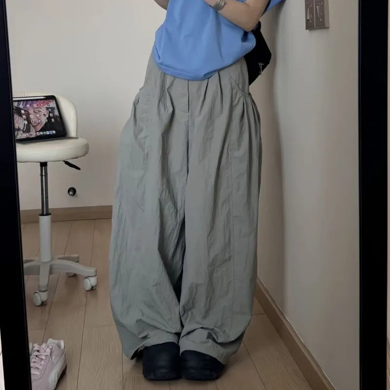 Bxoxo Gary Oversized Women Cargo Pants Wide Leg Elastic High Solid Color Korean Fashion Baggy Trousers Grunge Streetwear