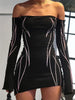 Bxoxo Gothic Black Off Shoulder Long Sleeve Mini Dress Grunge Streetwear Outfits Women Print Party Club Short Dress Vestido