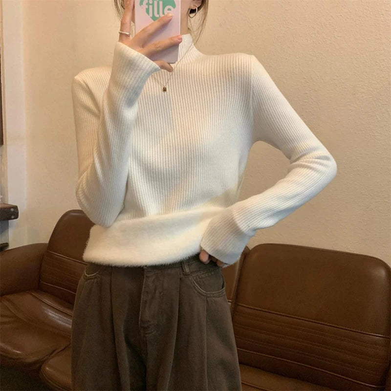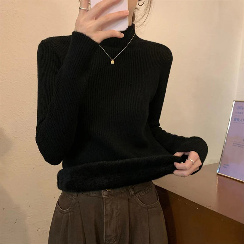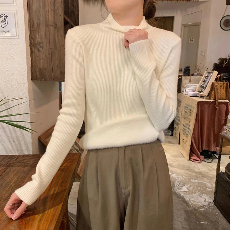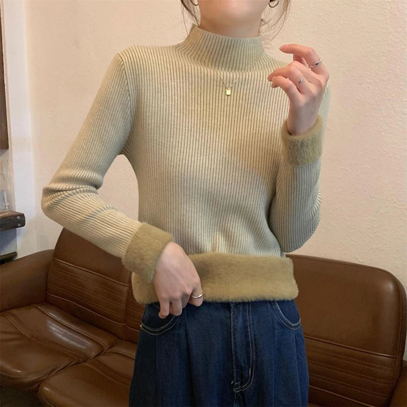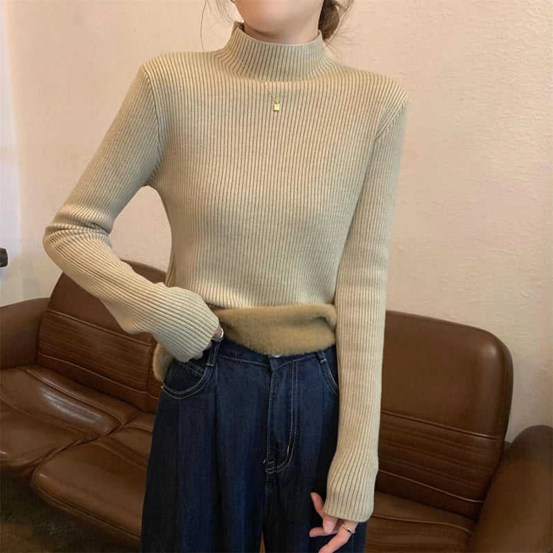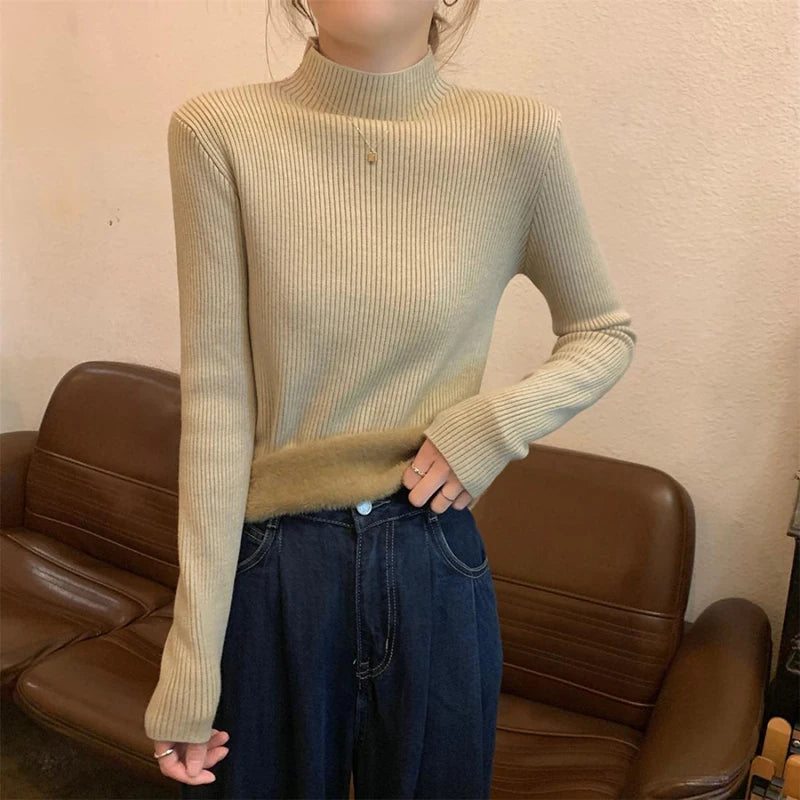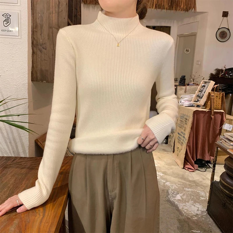 Bxoxo Half Turtleneck Knit Sweaters Women Autumn Thick Warm Slim Basic Solid Jumper Female Soft Plush Long Sleeve All Match Pullover
