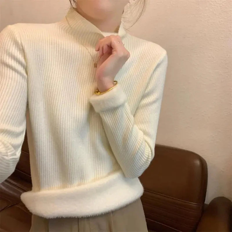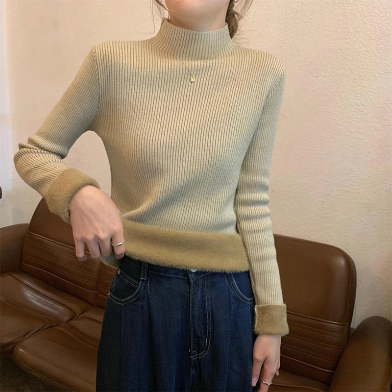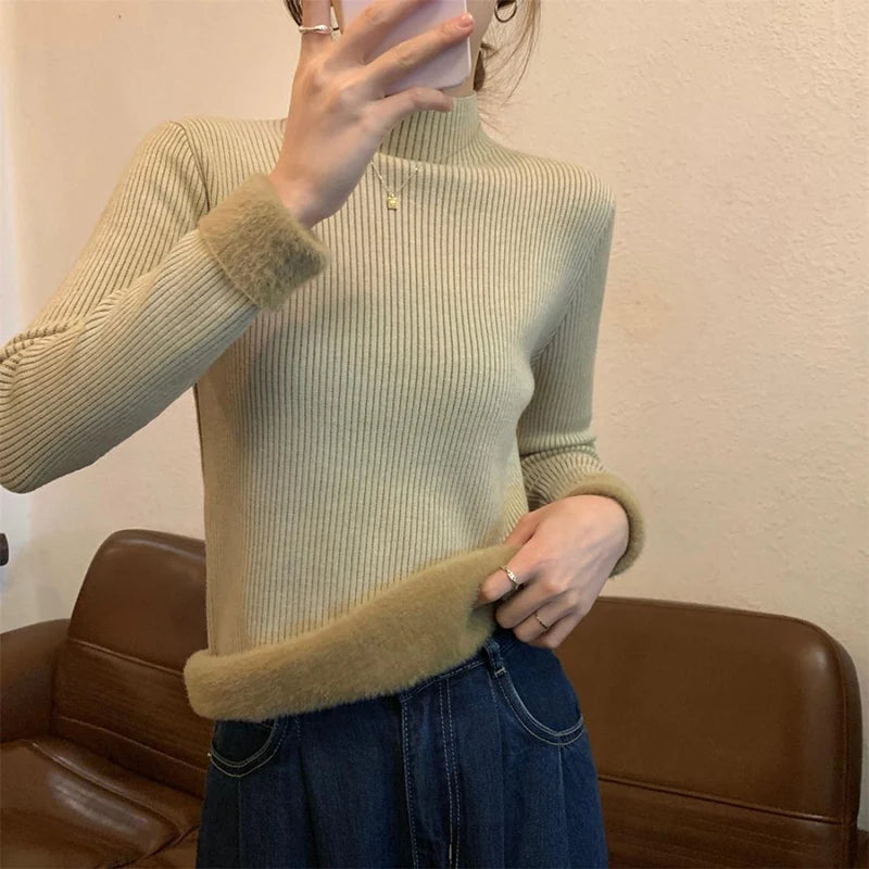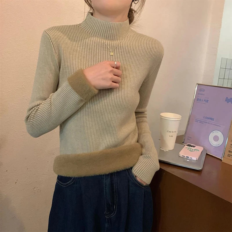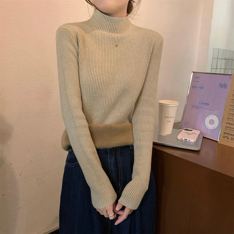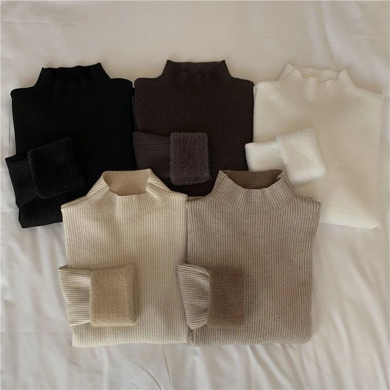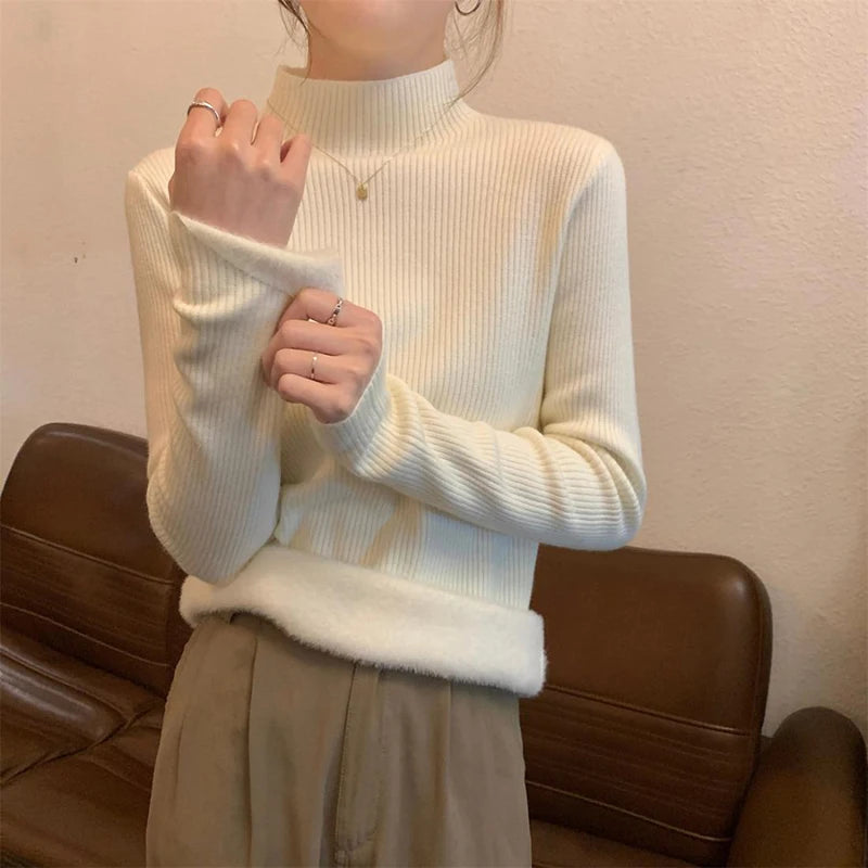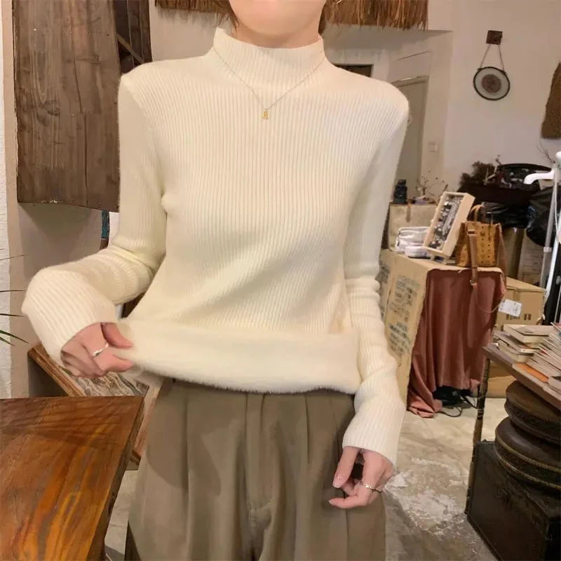 Bxoxo Half Turtleneck Knit Sweaters Women Autumn Thick Warm Slim Basic Solid Jumper Female Soft Plush Long Sleeve All Match Pullover