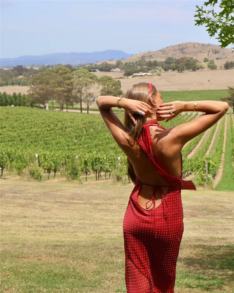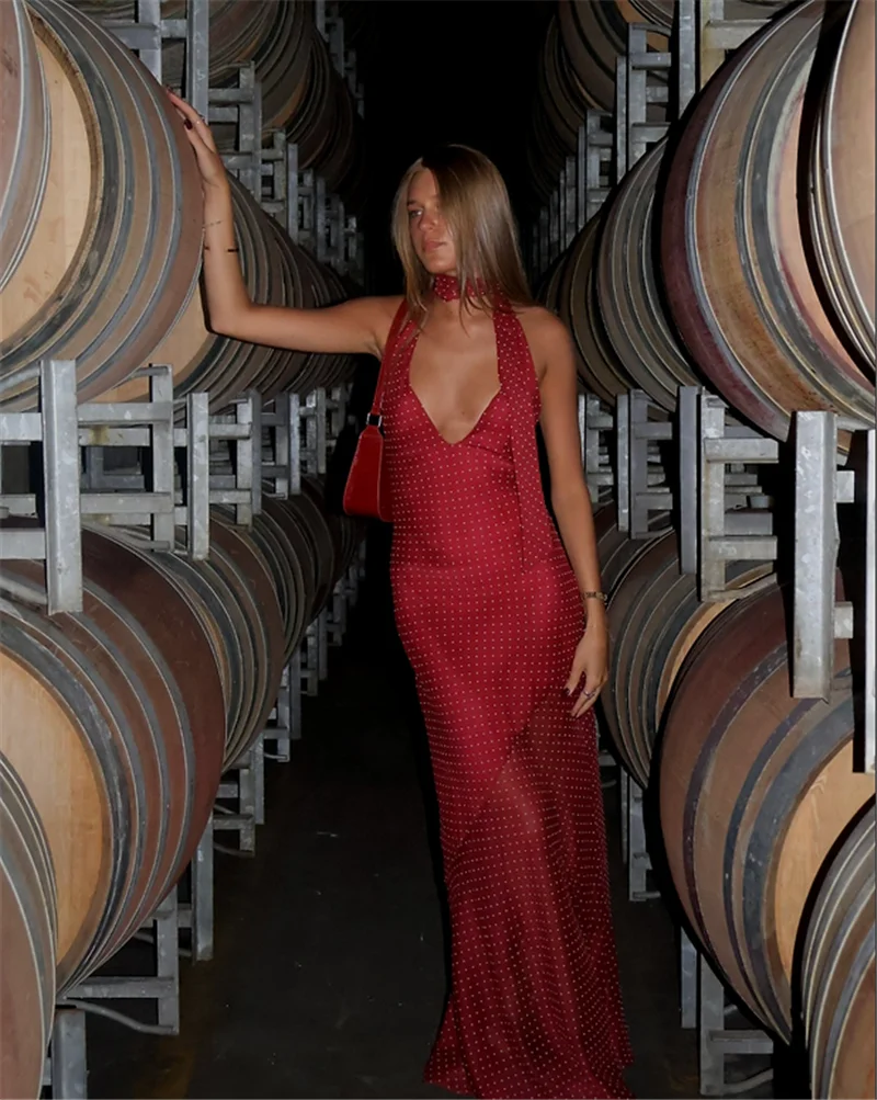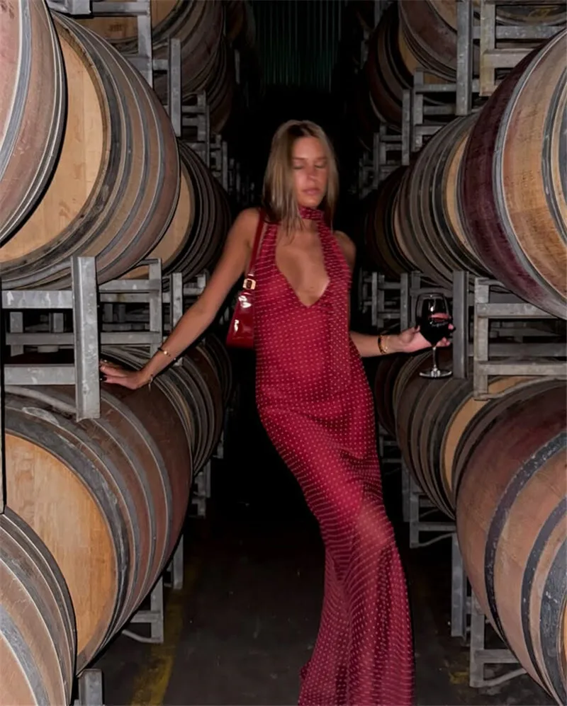 BXOXO Halter Polka Dot Maxi Dress For Women Elegant Deep V Neck Backless Lace-up Bodycon Club Party Long Dress Vestido
