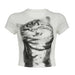 BXOXO Harajuku Animal Print Crop Top Basic White Short Sleeve Crewneck T-shirt Women Casual Slim-fitting Tees Lady y2k Vintage