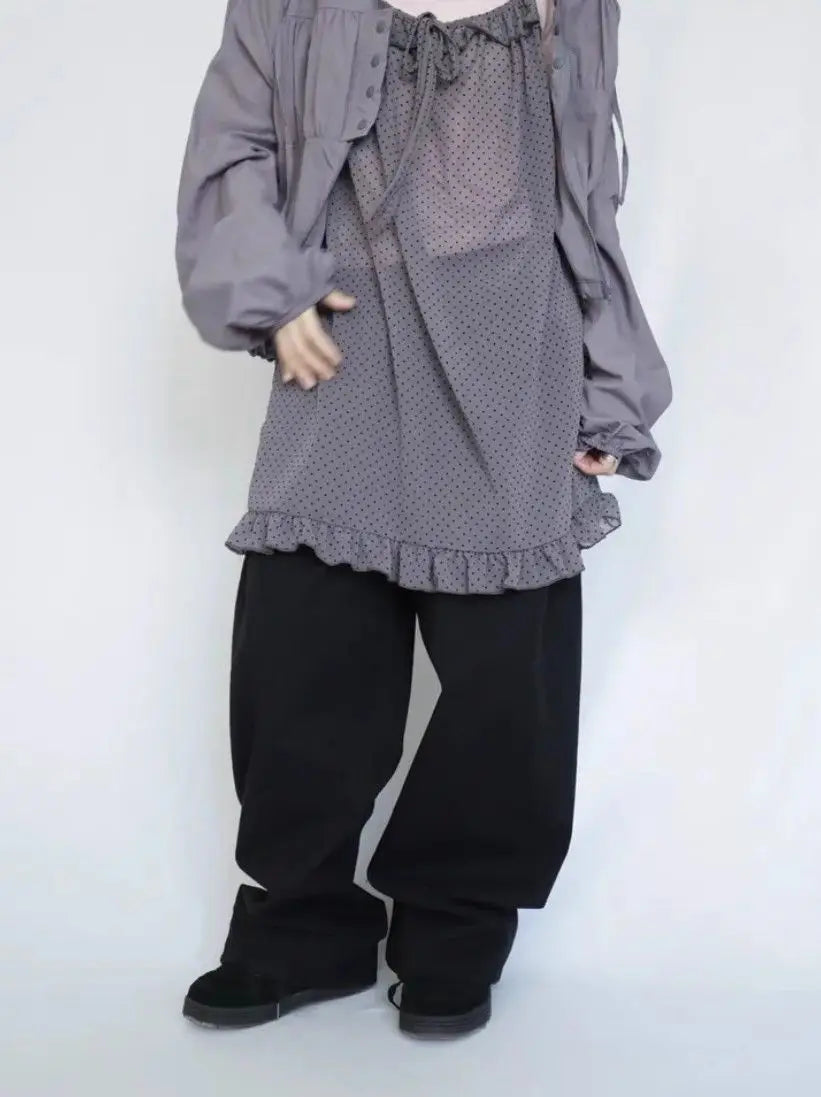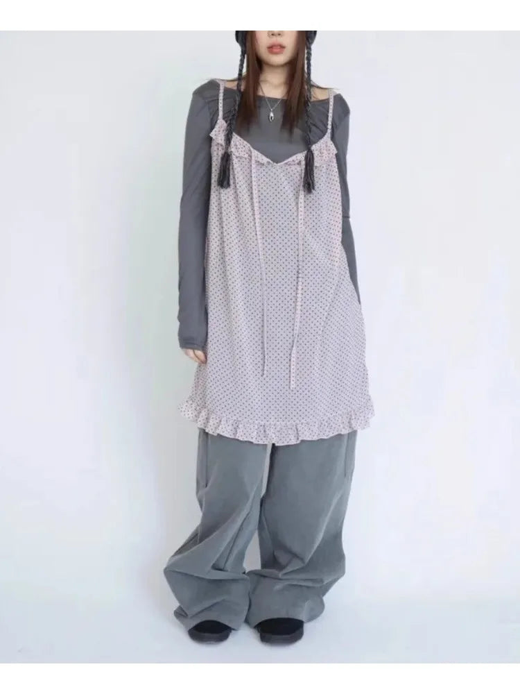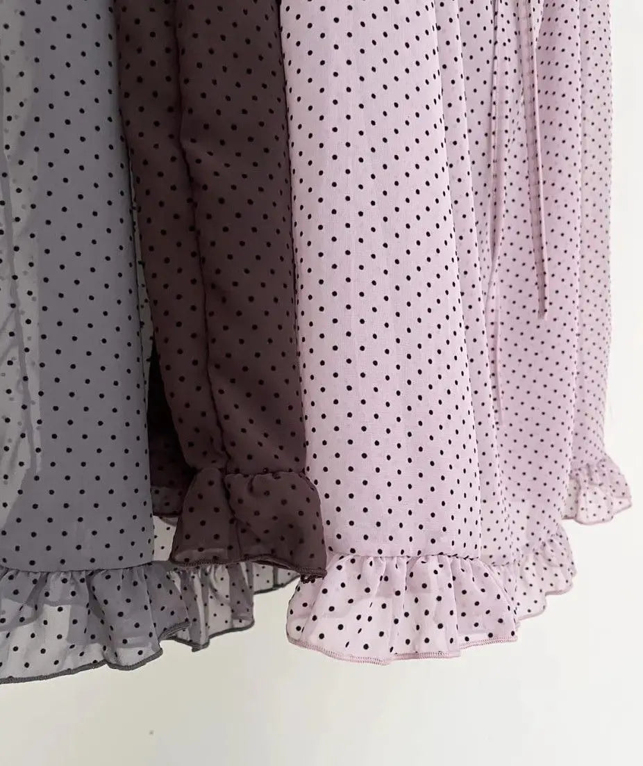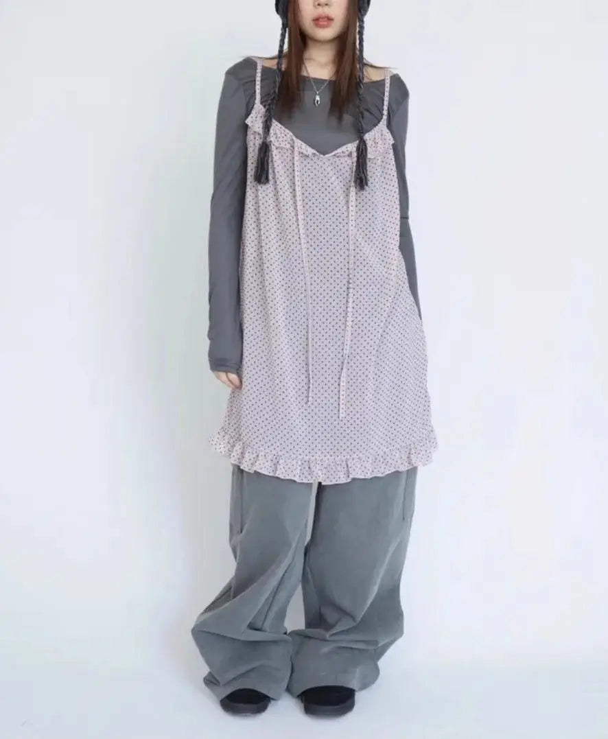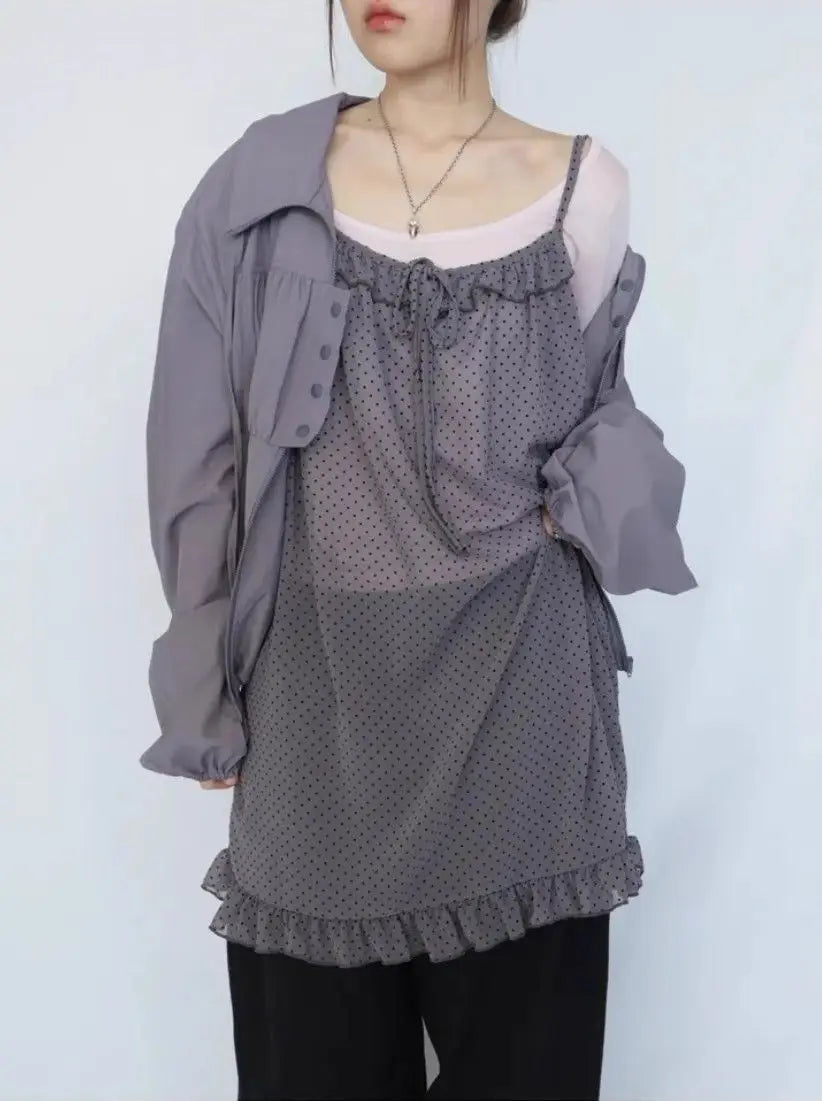 Bxoxo Harajuku Japanese Style Tank Tops Women Vintage Polka Dot Ruffle Sleeveless Mesh Dress Sexy See-through Layered Wear