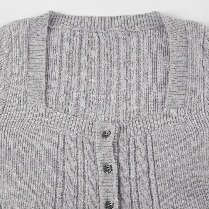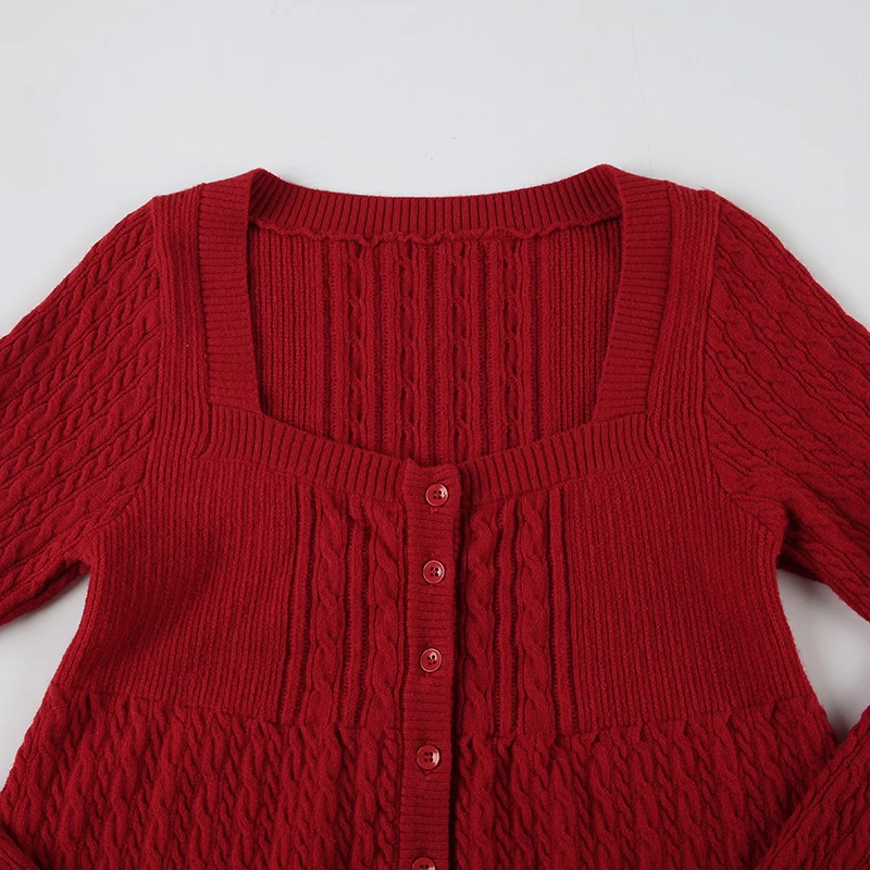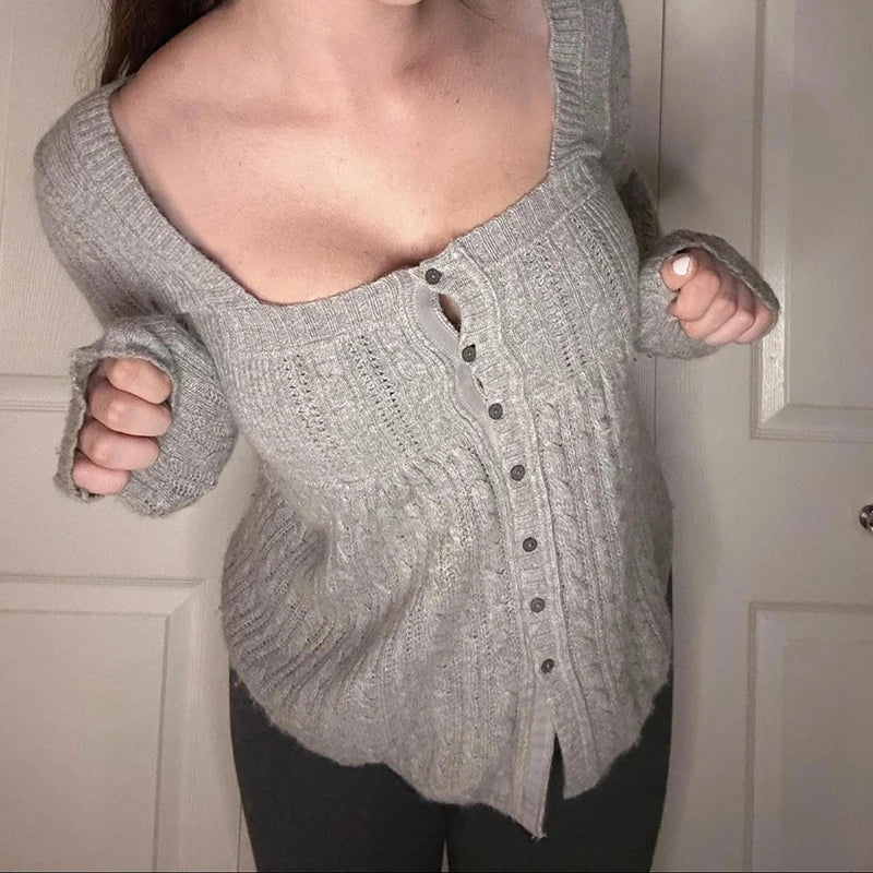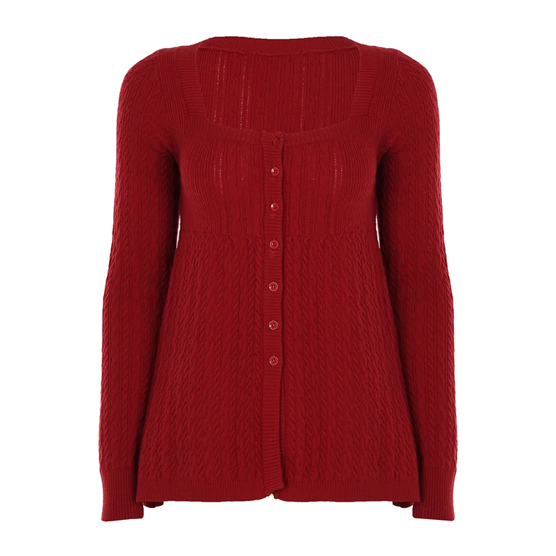 Bxoxo Harajuku Retro A-line Sweater Solid Full Sleeve Square Collar Loose Fall Sweaters for Women y2k Aesthetic Casual Knitwear
