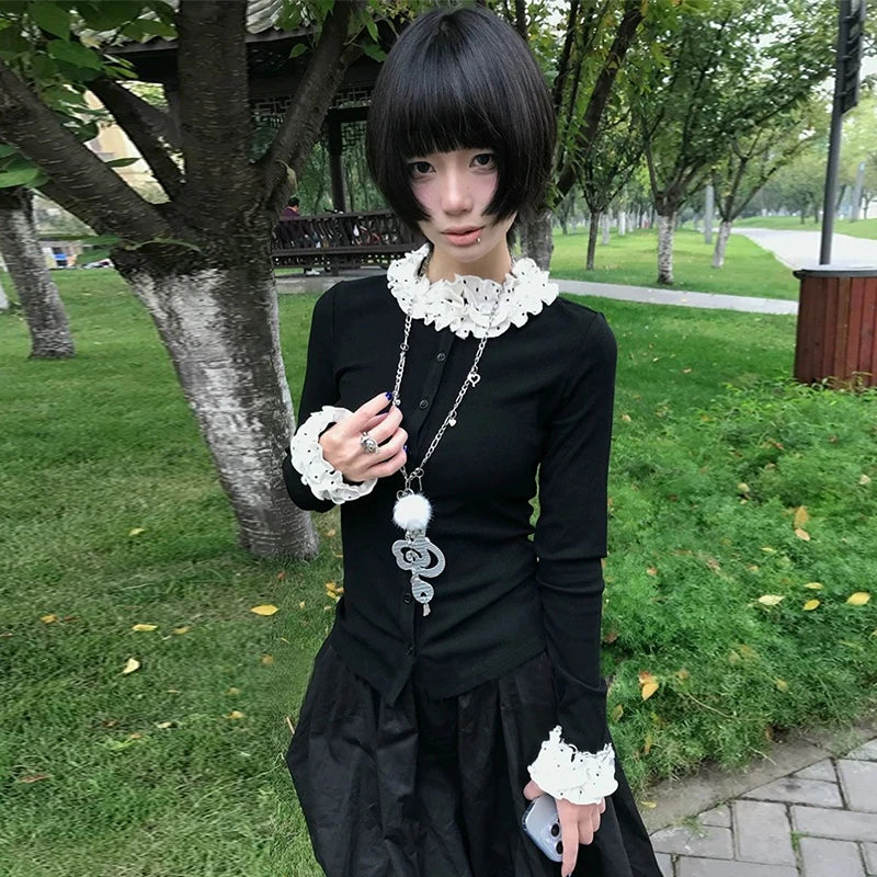 BXOXO Harajuku Sweater Women Slim Patchwork Y2k Fairycore Sweet Cardigan Winter Knit Sweater Coats Aesthetic Japanese 2000s