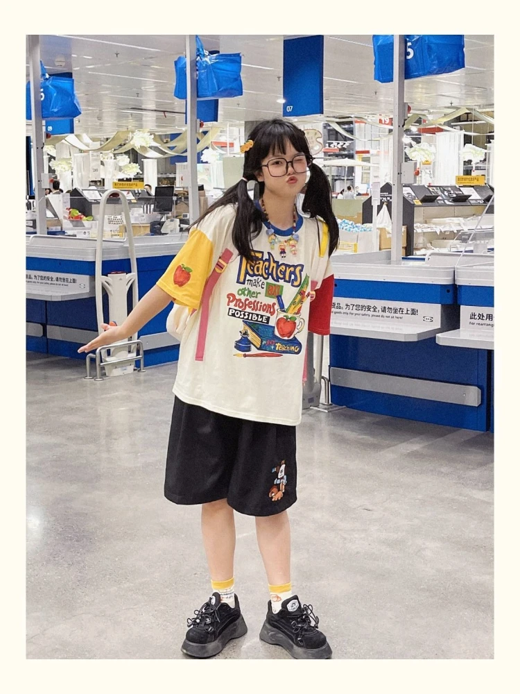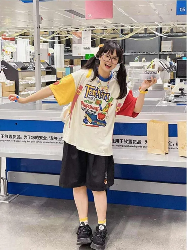 BXOXO Harajuku T Shirt Women Korean Style Graphic Tees Y2k Grunge Aesthetic Funny Cartoon Printed Tshirts Summer 2025 Tee Shirt