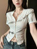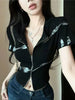 Bxoxo Harajuku Y2K T Shirt Women Slim Sexy Cropped Double Zipper Vintage Tees Streetwear Vintage American Casual O Neck Lady Tops