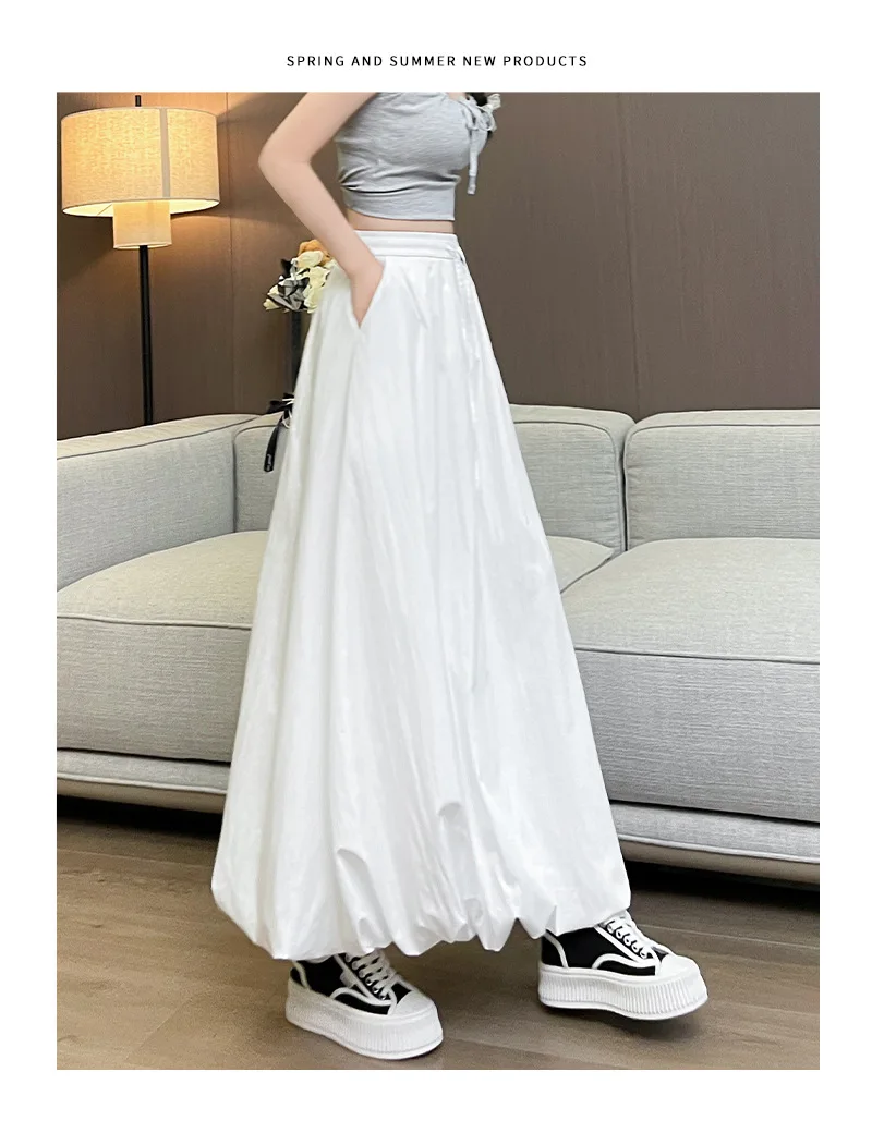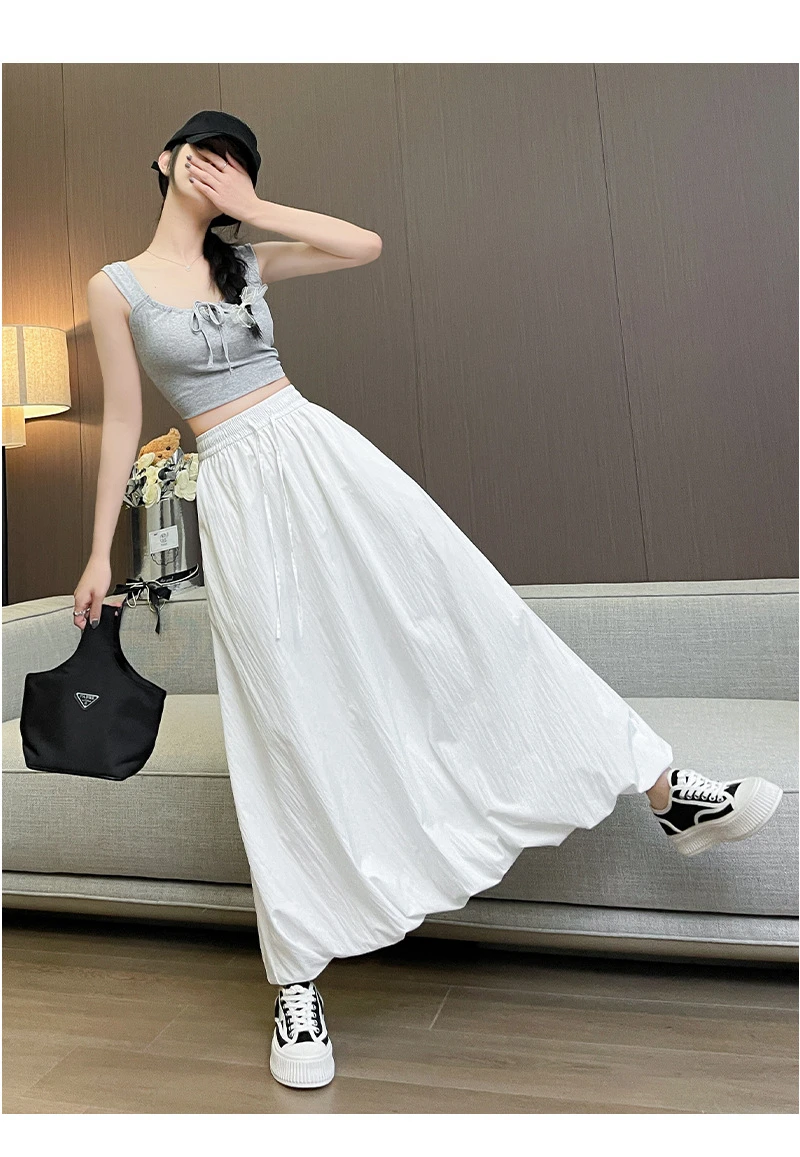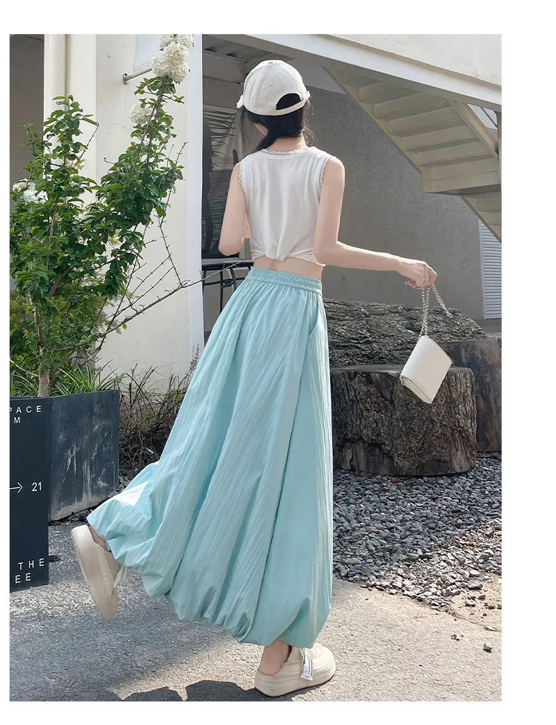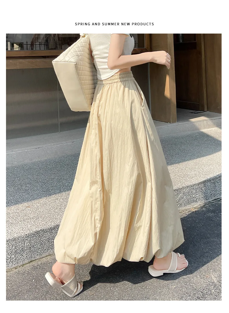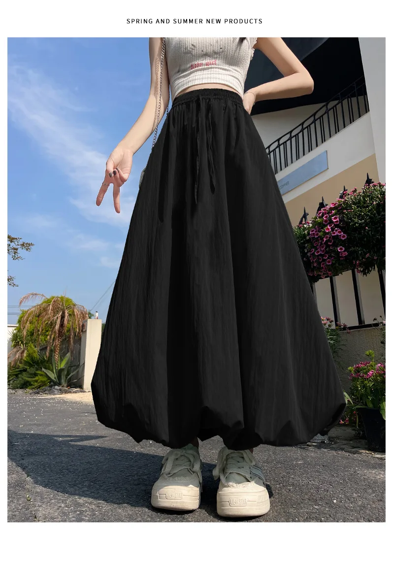 Bxoxo High Waist Fluffy Flower Bud Skirt Summer New Loose Versatile A-line Lantern Skirt Solid Color Elastic High Waist Long Skirt