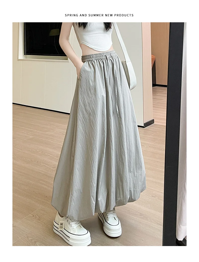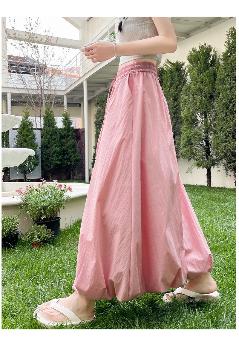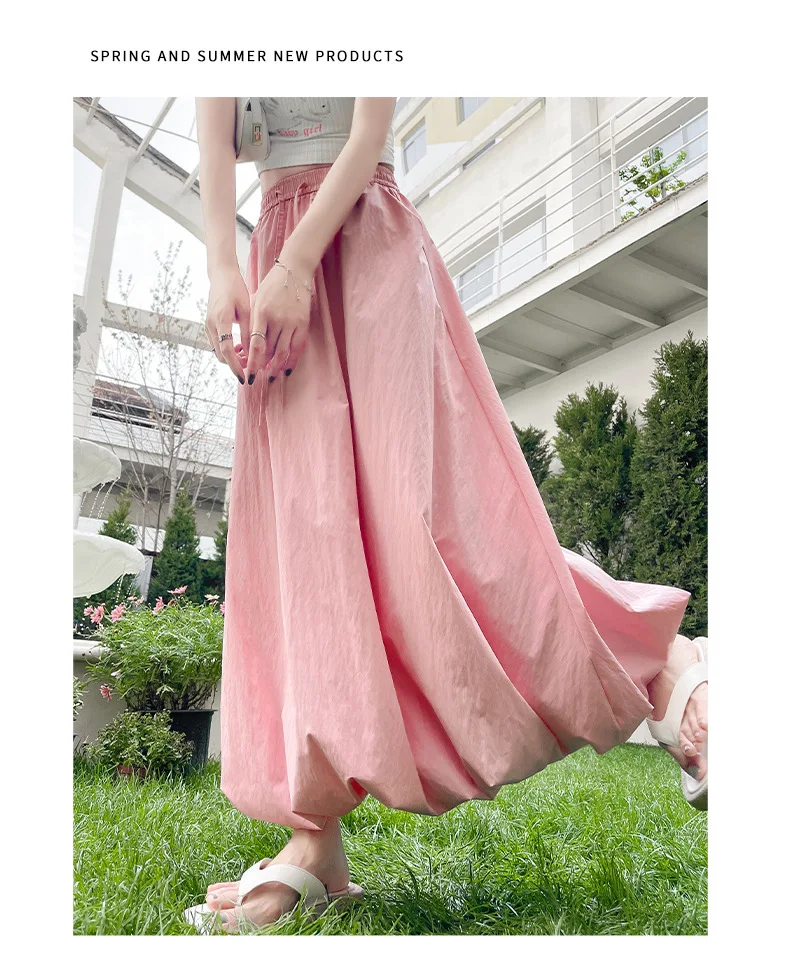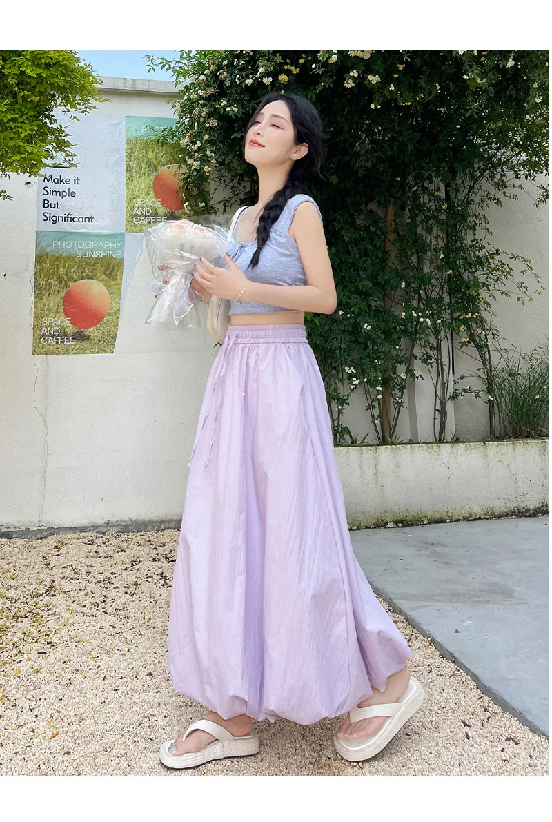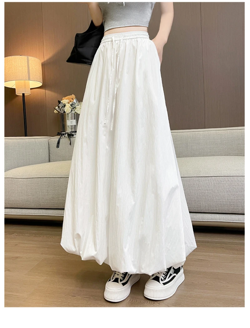 Bxoxo High Waist Fluffy Flower Bud Skirt Summer New Loose Versatile A-line Lantern Skirt Solid Color Elastic High Waist Long Skirt
