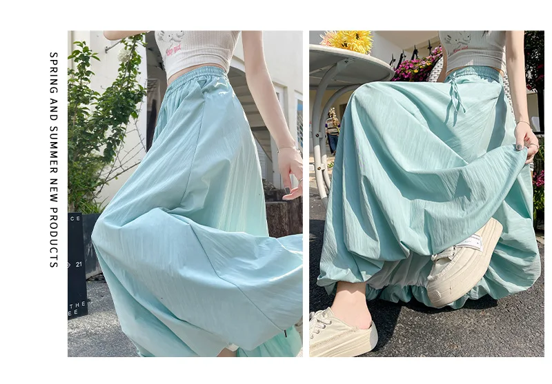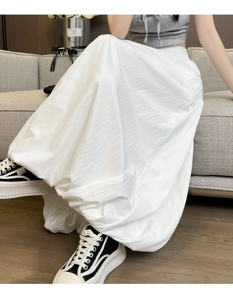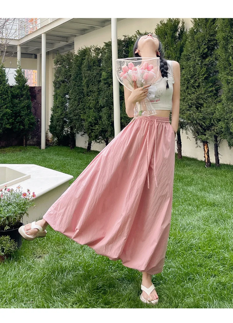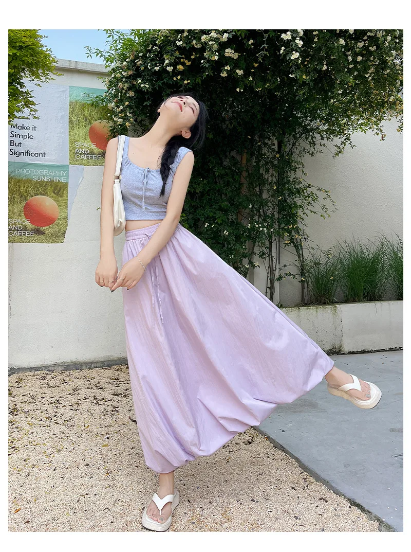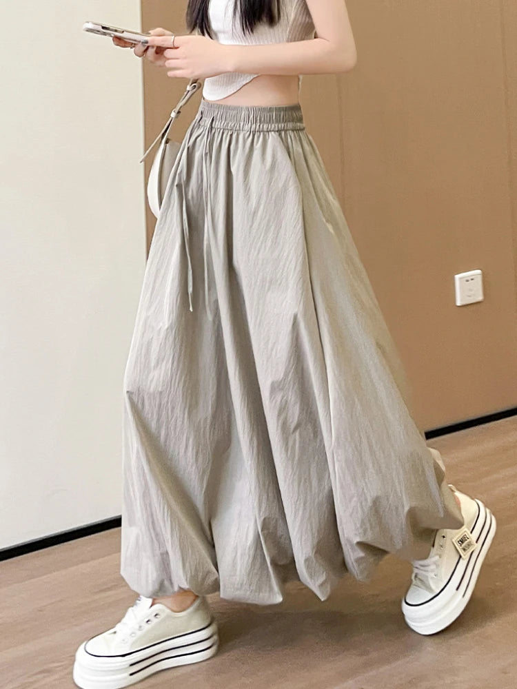 Bxoxo High Waist Fluffy Flower Bud Skirt Summer New Loose Versatile A-line Lantern Skirt Solid Color Elastic High Waist Long Skirt
