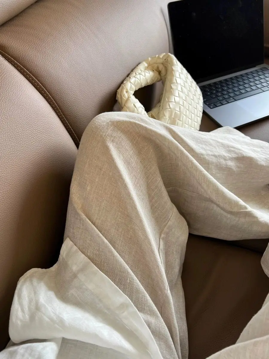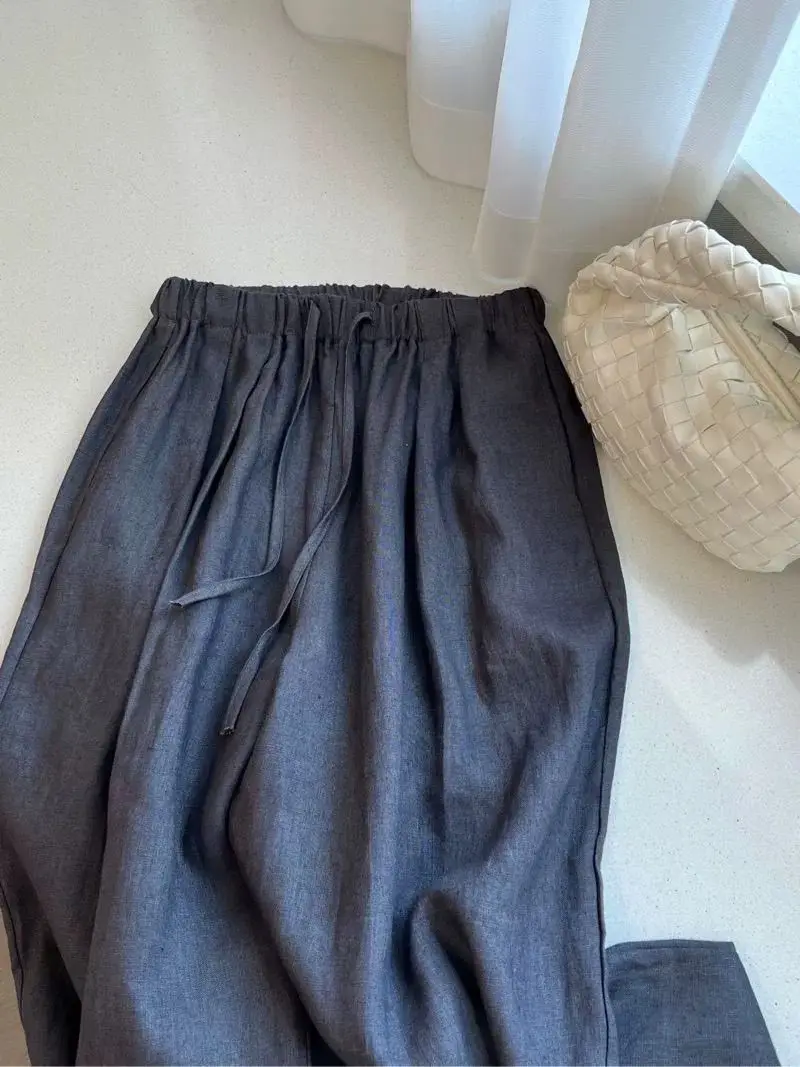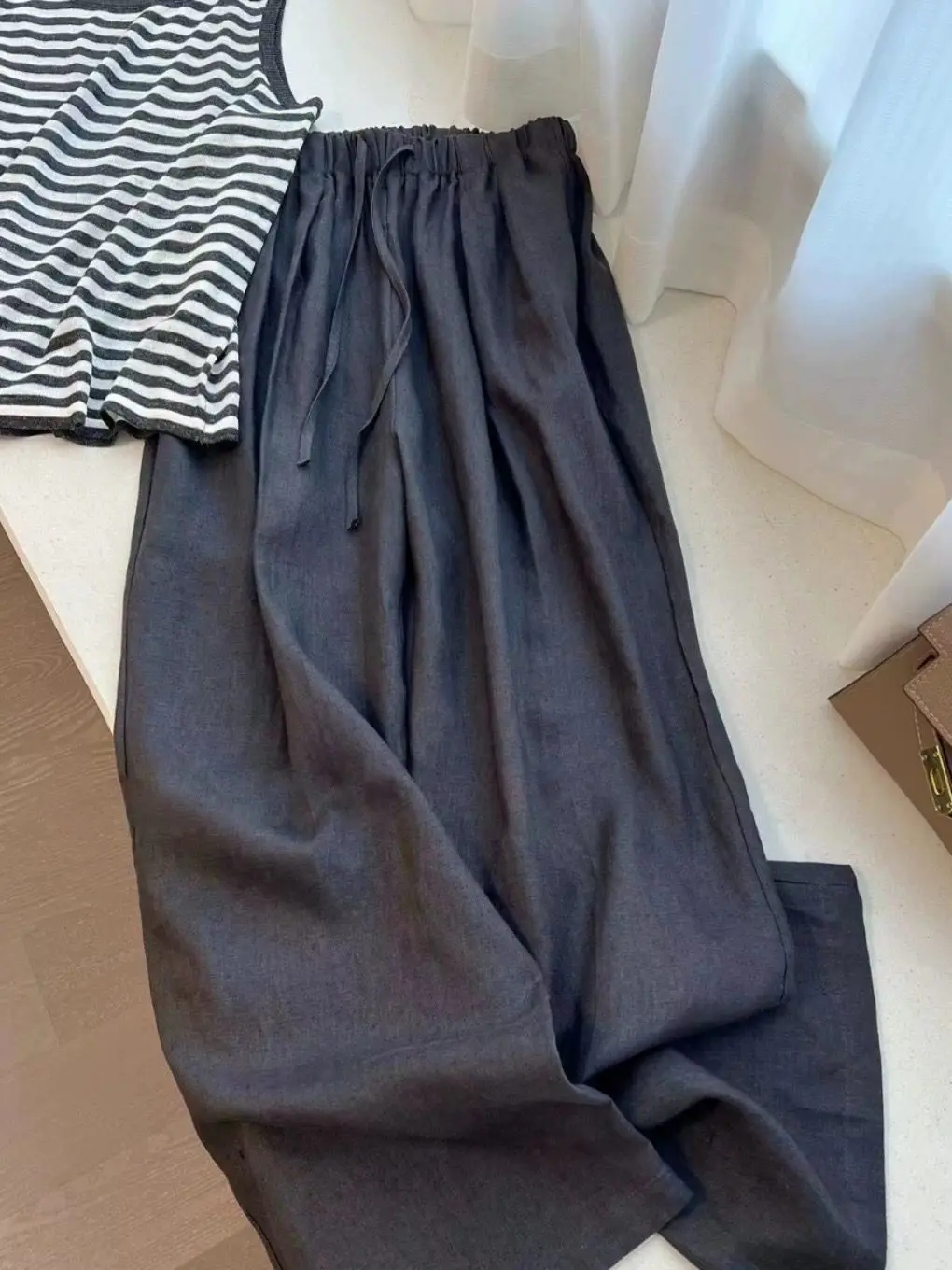 Bxoxo High Waisted Linen Wide Leg Pants for Summer Loose Comfort Breathable Floor Length Pants Leisure Simple Cotton and Linen Pants