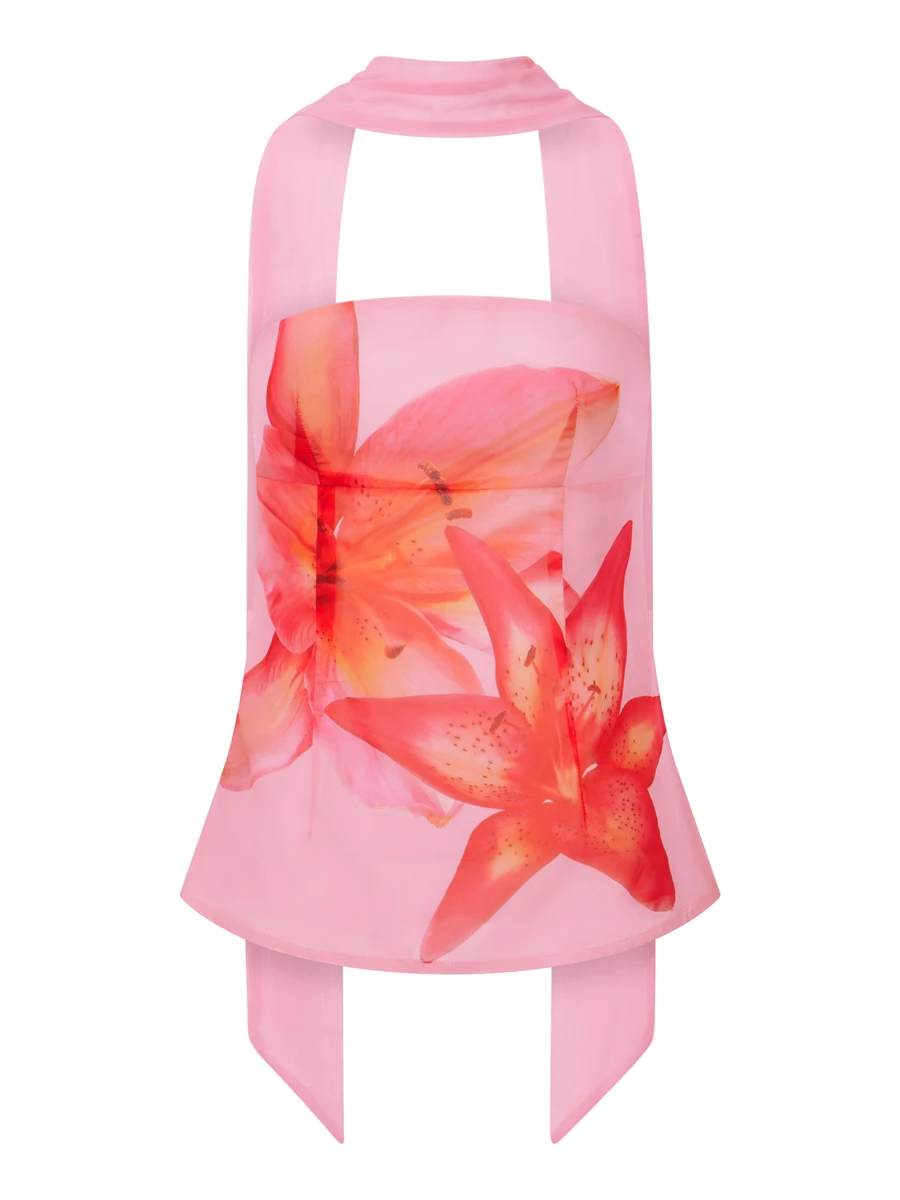 BXOXO Holiday Floral Print Tube Top with Scarf Fairycore y2k Strapless Cropped Tops Women Summer Casual Vest Elegant Aesthetic