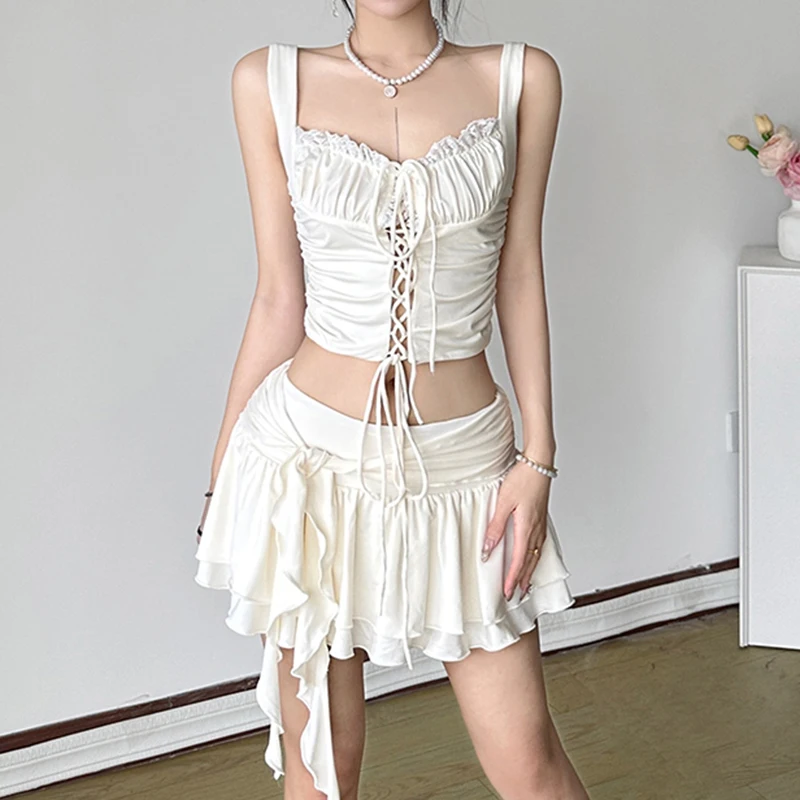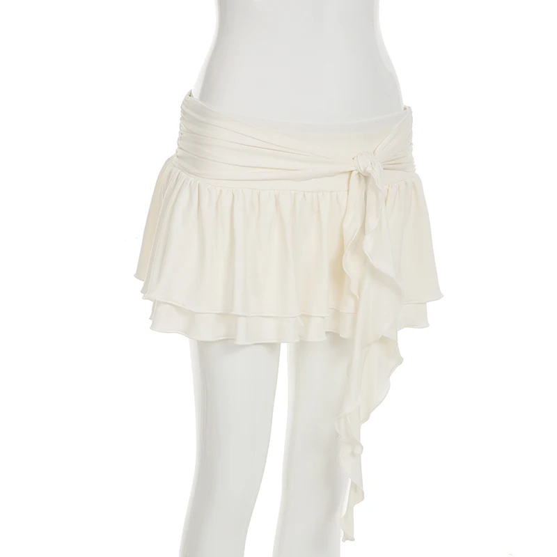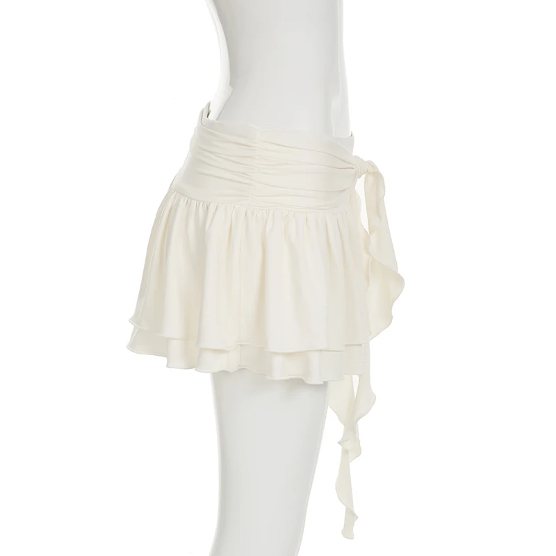 BXOXO Holiday Ruffles Pleated Skirt Cute Coquette Loose A-line Low-waisted Short Skirts for Women 2000s Vintage Clothing Ladies