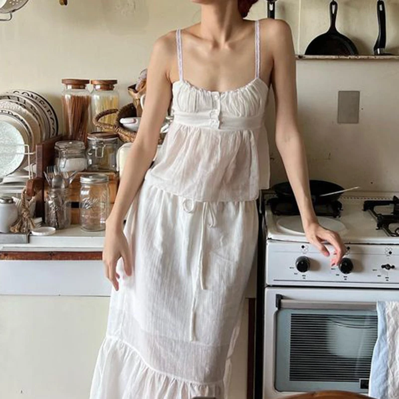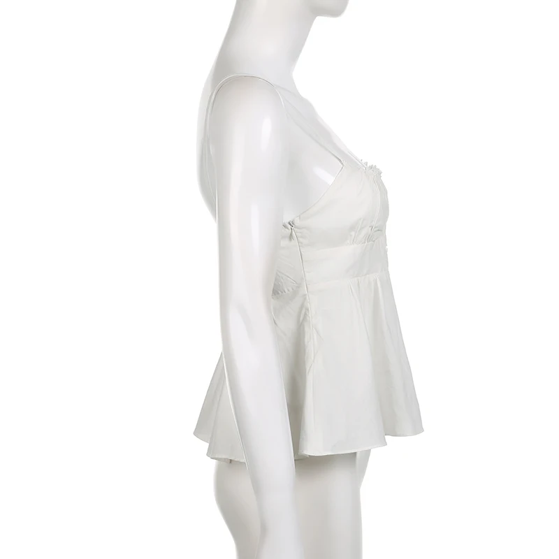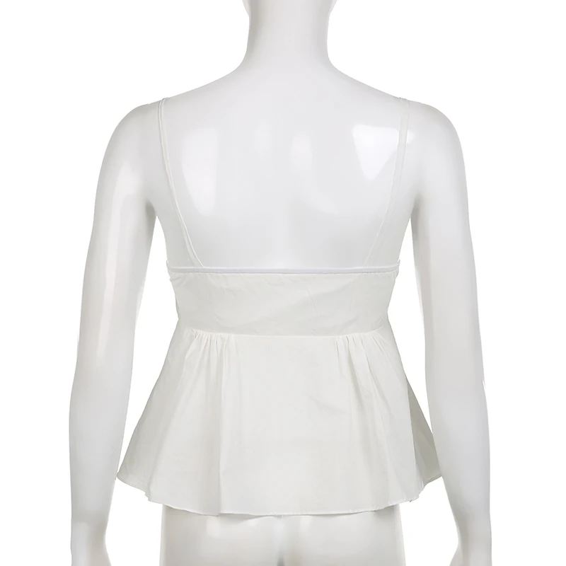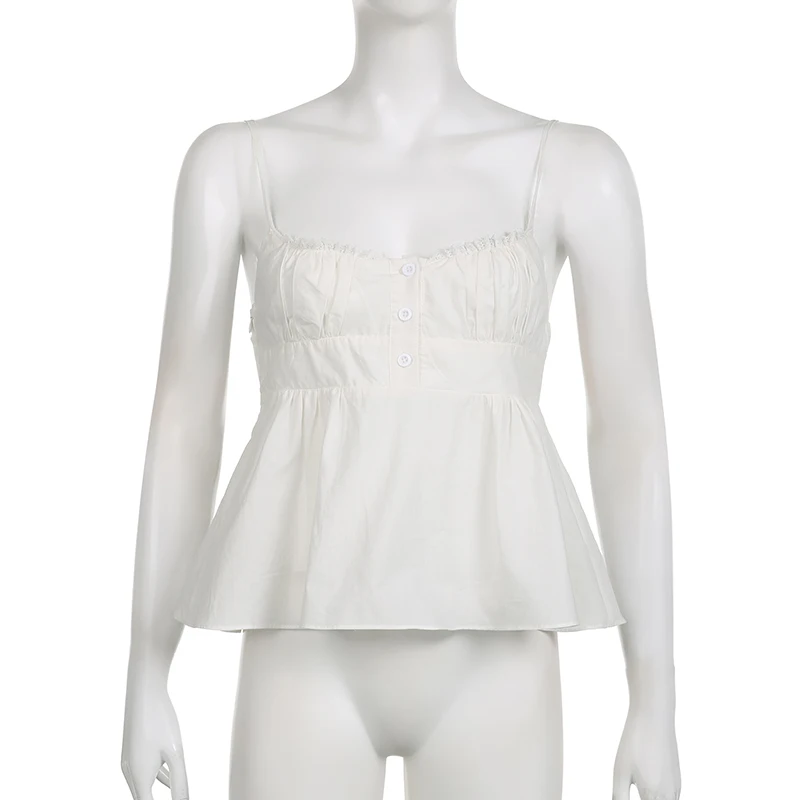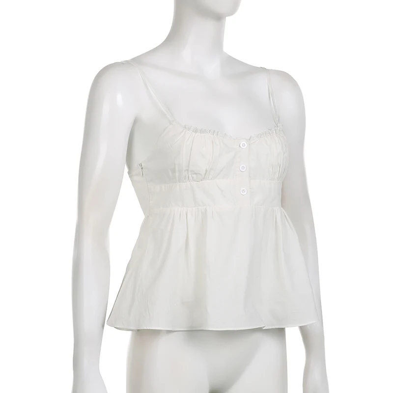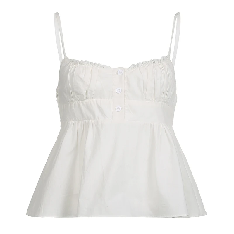 BXOXO Holiday White Button Stitching Camis Cute Coquette Loose Sleeveless Crop Tops Women y2k Aesthetic Vest Summer Casual Tees