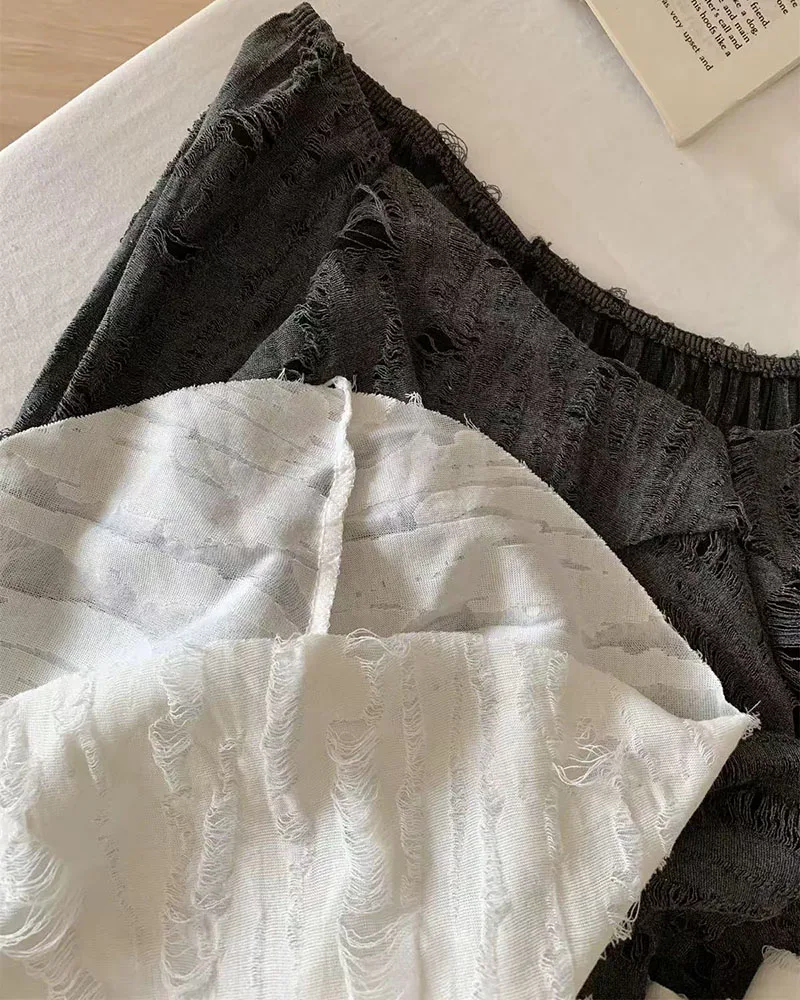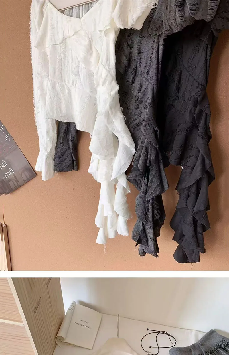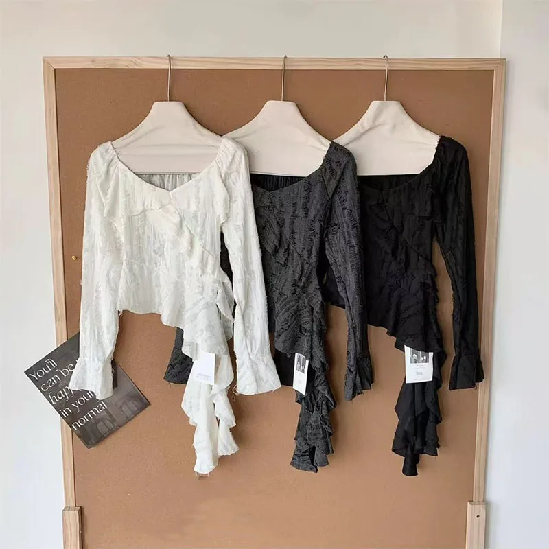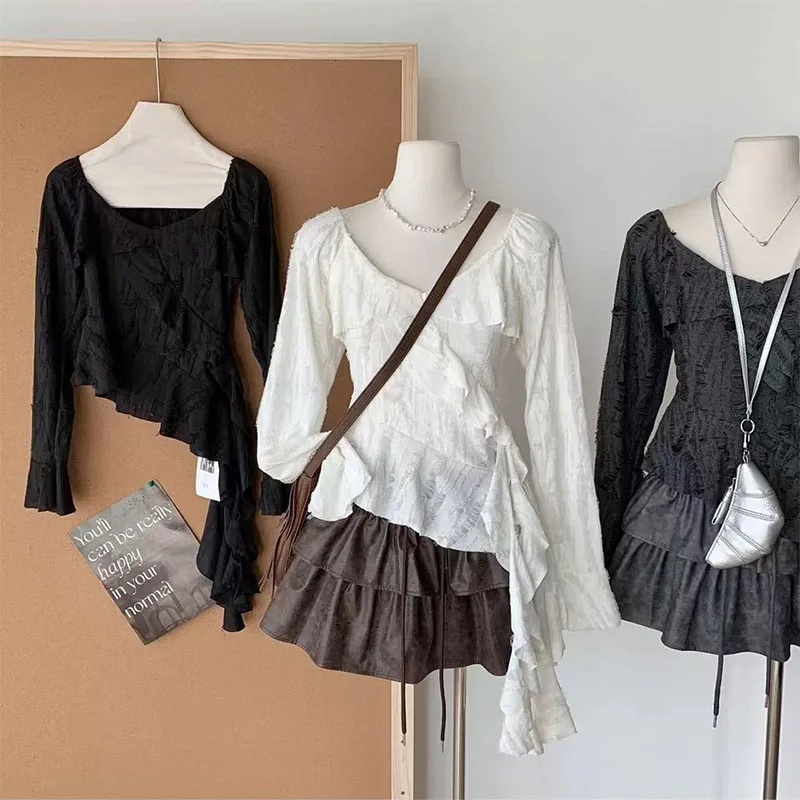 Bxoxo Irregular Patchwork Women T Shirts Y2K Fashion Gothic Ruffled Sleeve Female Tops Streetwear Sexy Hollow Out Hole Casual Tees New