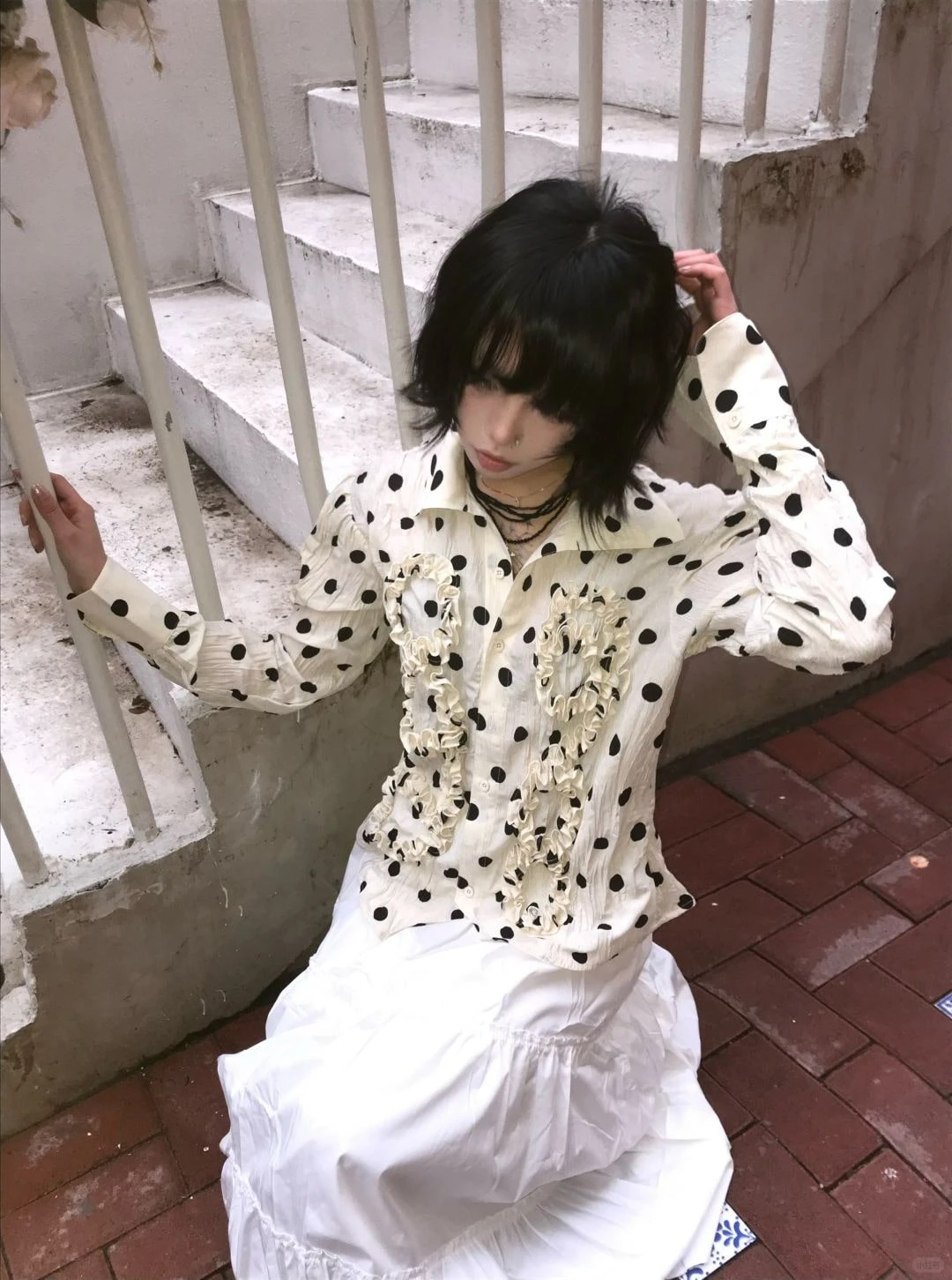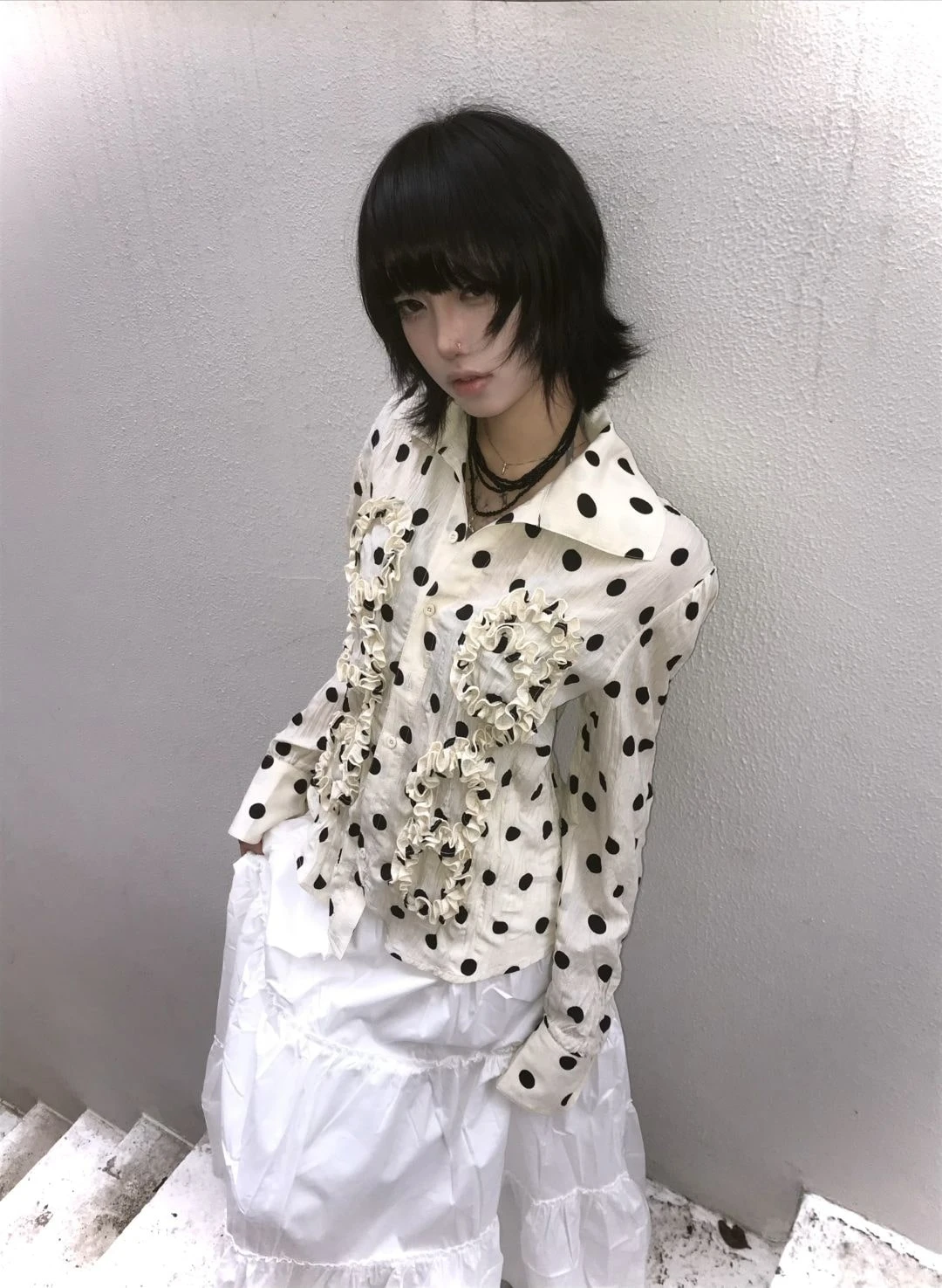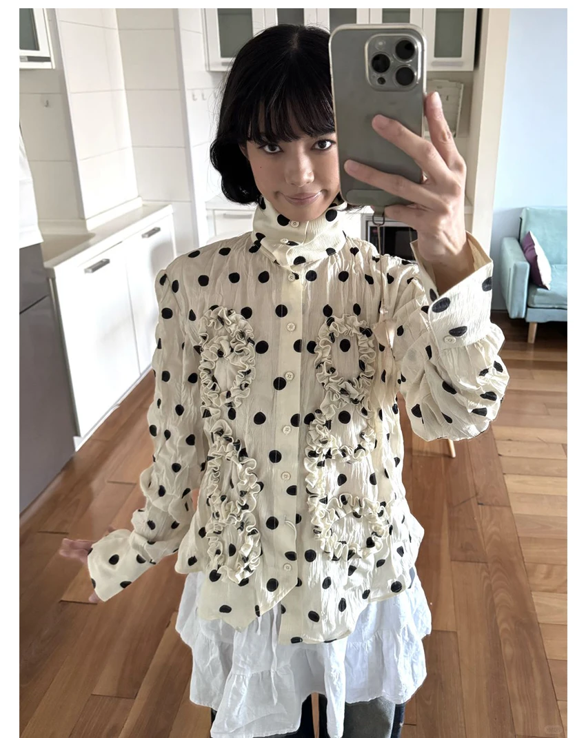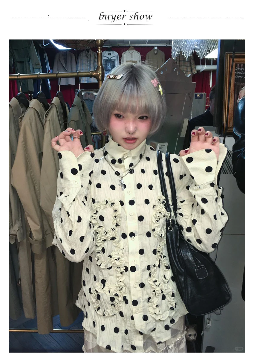 BXOXO Japanese Y2k Polka Dot Shirt Trashy 2000s Style Frill Blouse Women Vintage Harajuku Irregular Shirts Grunge Aesthetics