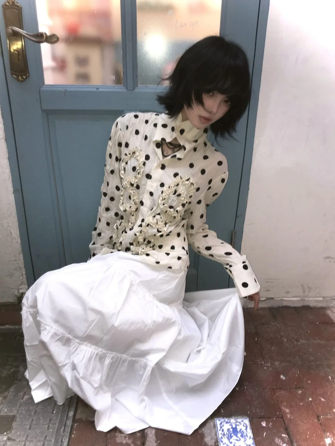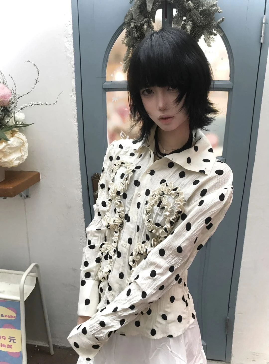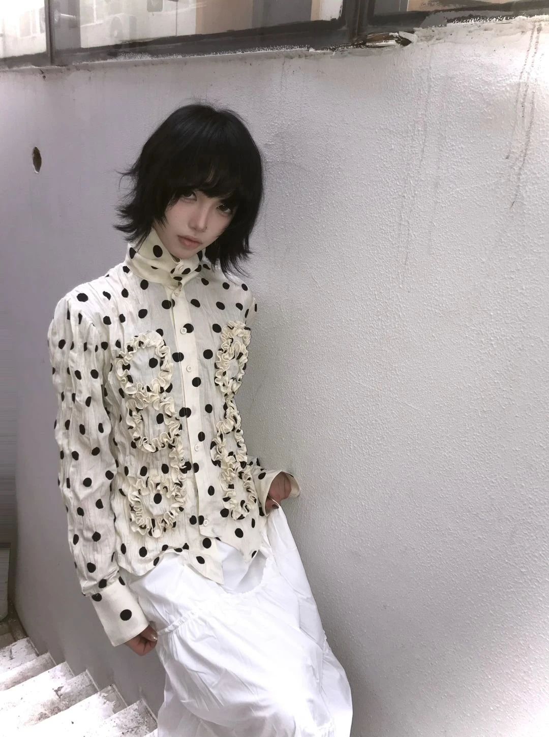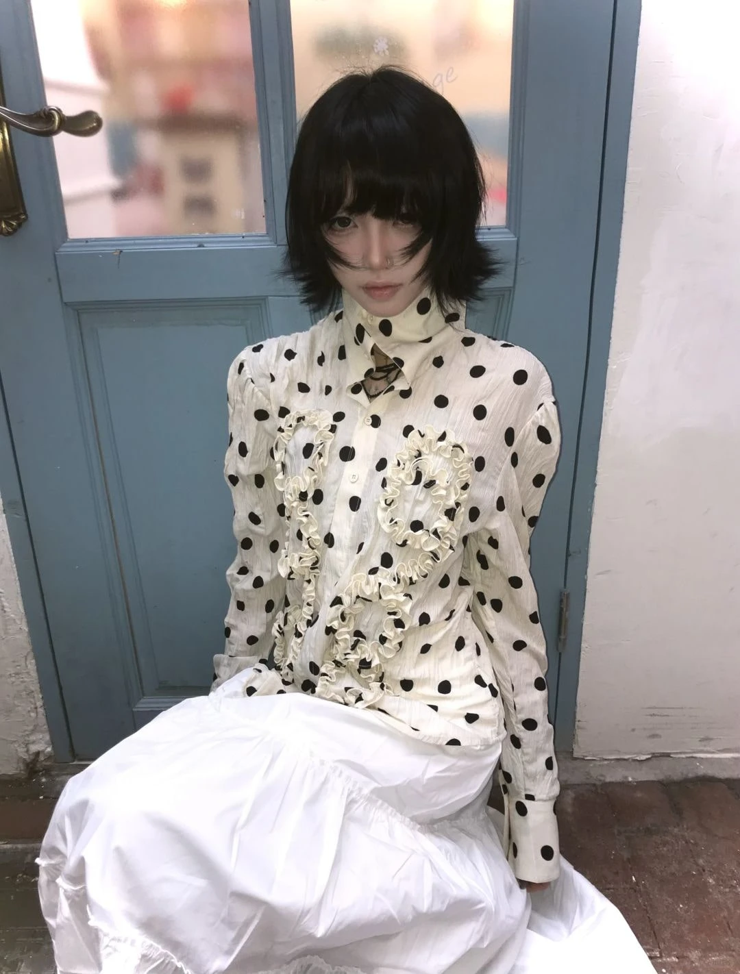 BXOXO Japanese Y2k Polka Dot Shirt Trashy 2000s Style Frill Blouse Women Vintage Harajuku Irregular Shirts Grunge Aesthetics