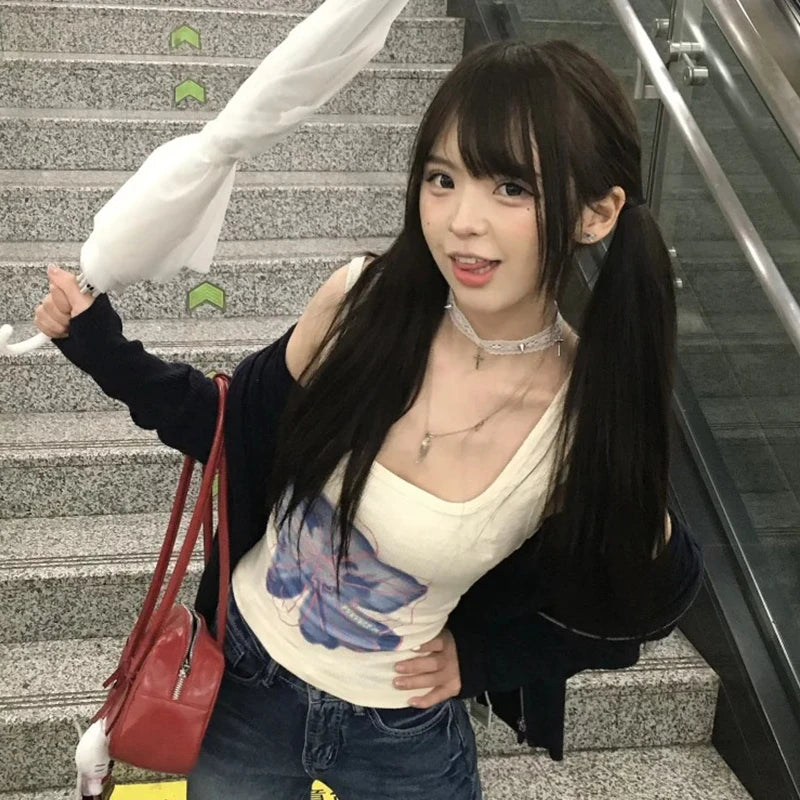 BXOXO Japanese Y2k Tank Tops Women Print Floral Sleeveless T Shirts 2000s Aesthetic Streetwear Camis Korean Style Summer Tops