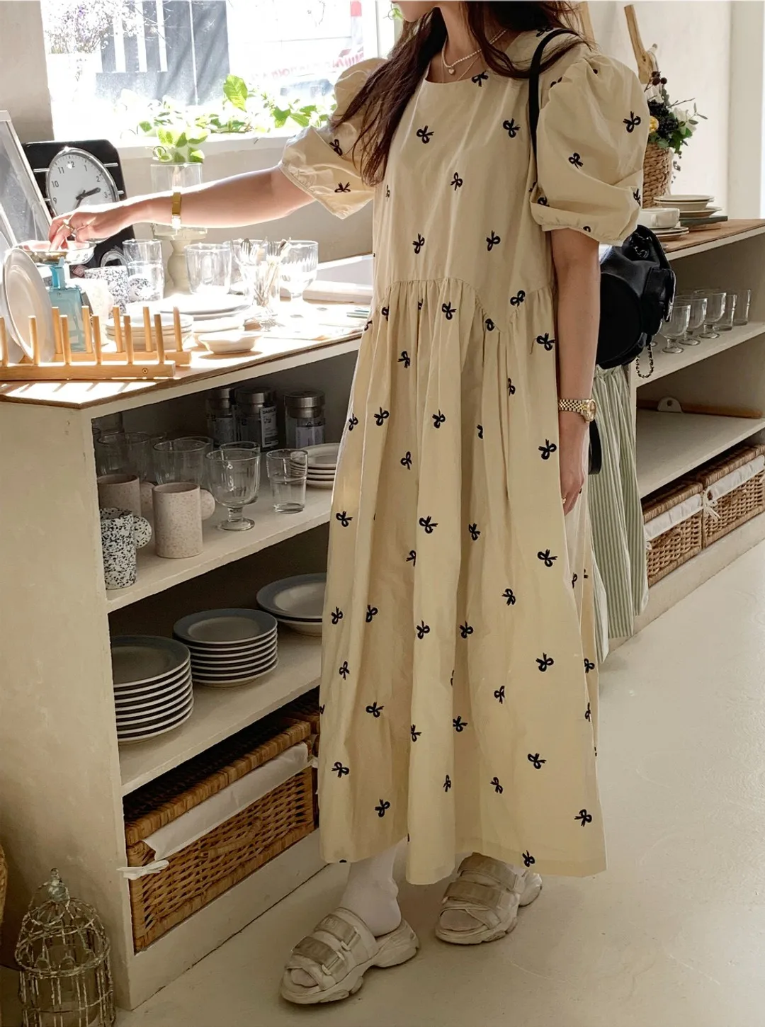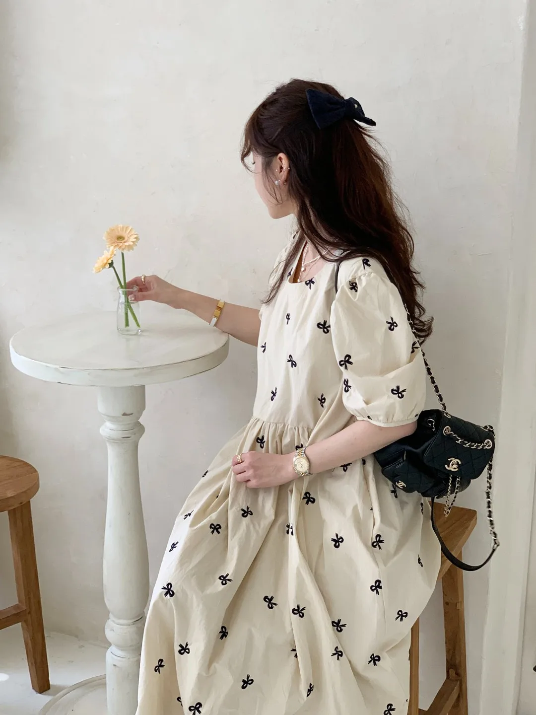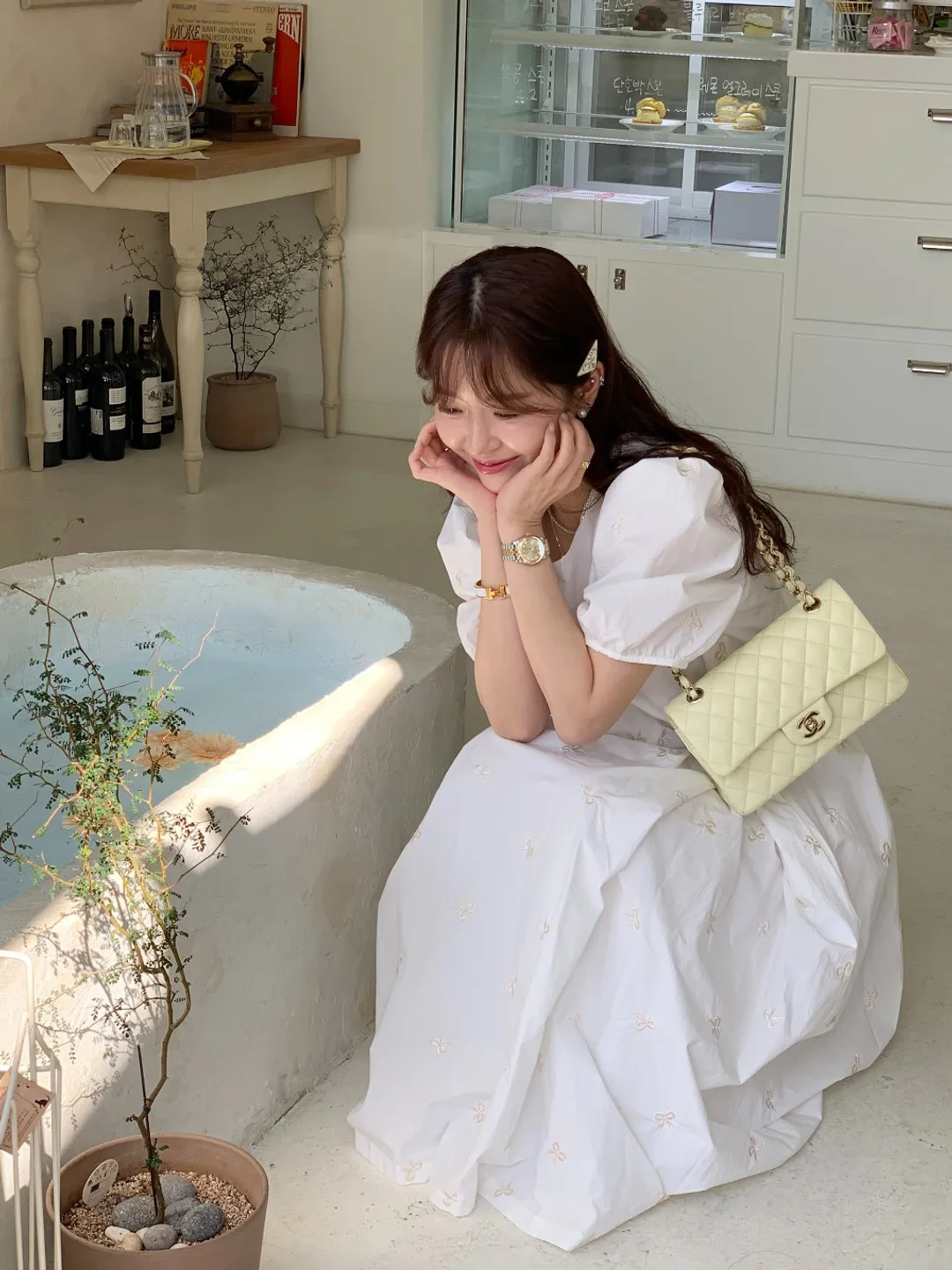 This Korean chic vintage dress features a sweet butterfly knot embroidery, adding a touch of elegance and charm to your wardrobe.