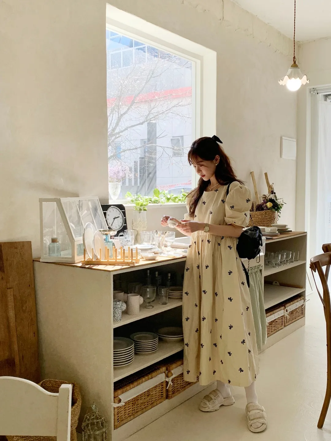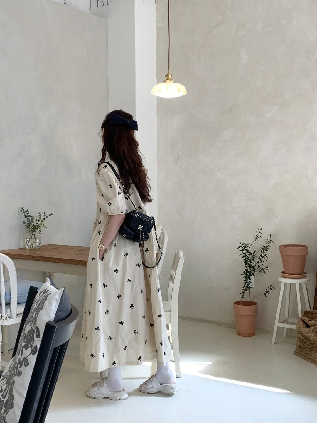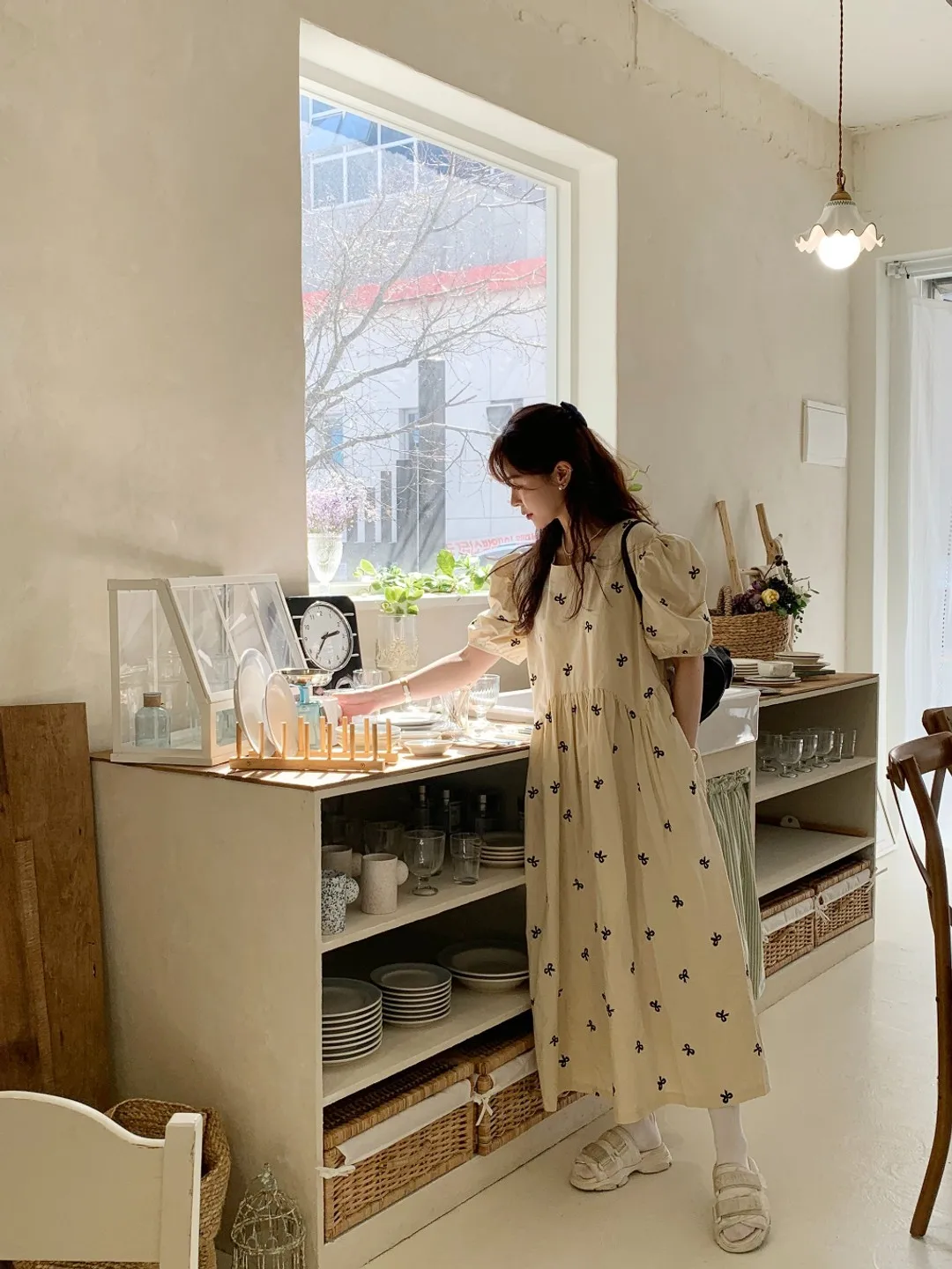 This Korean chic vintage dress features a sweet butterfly knot embroidery, adding a touch of elegance and charm to your wardrobe.