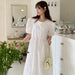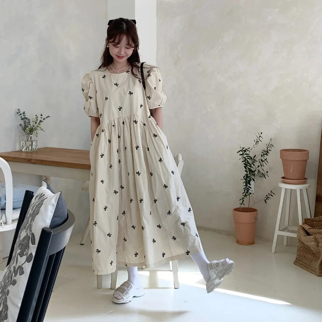 Bxoxo Knot Embroidered Loose Bubble Sve Dr Chic Agel Casual Cotton Long Dr round Ne A-Line Gown