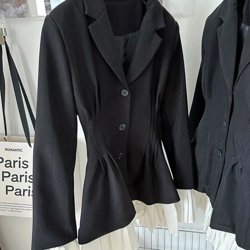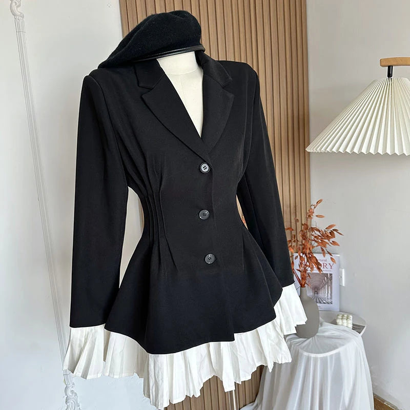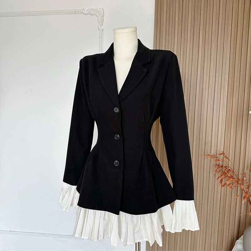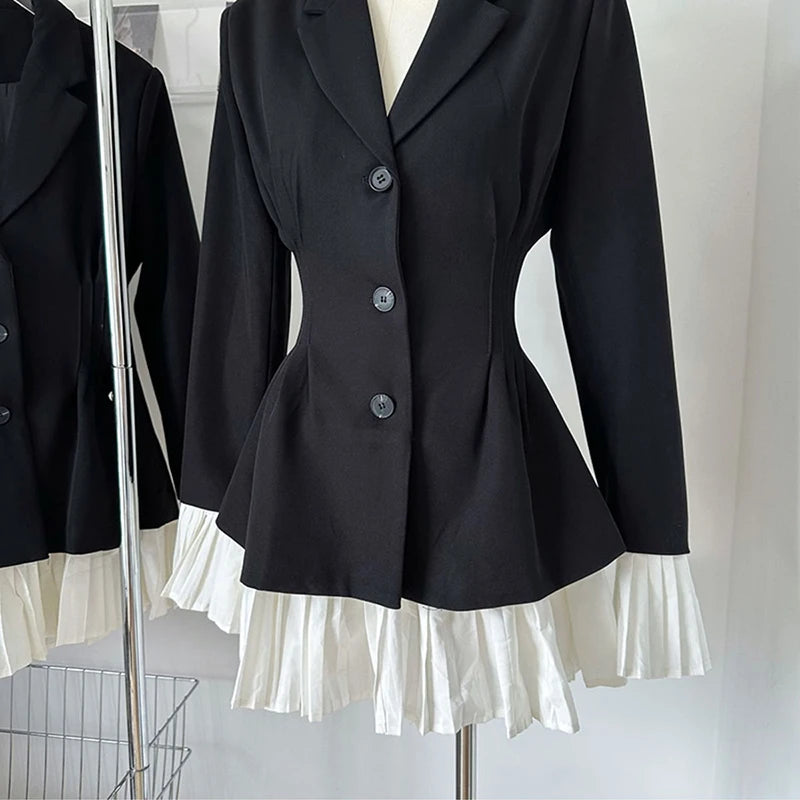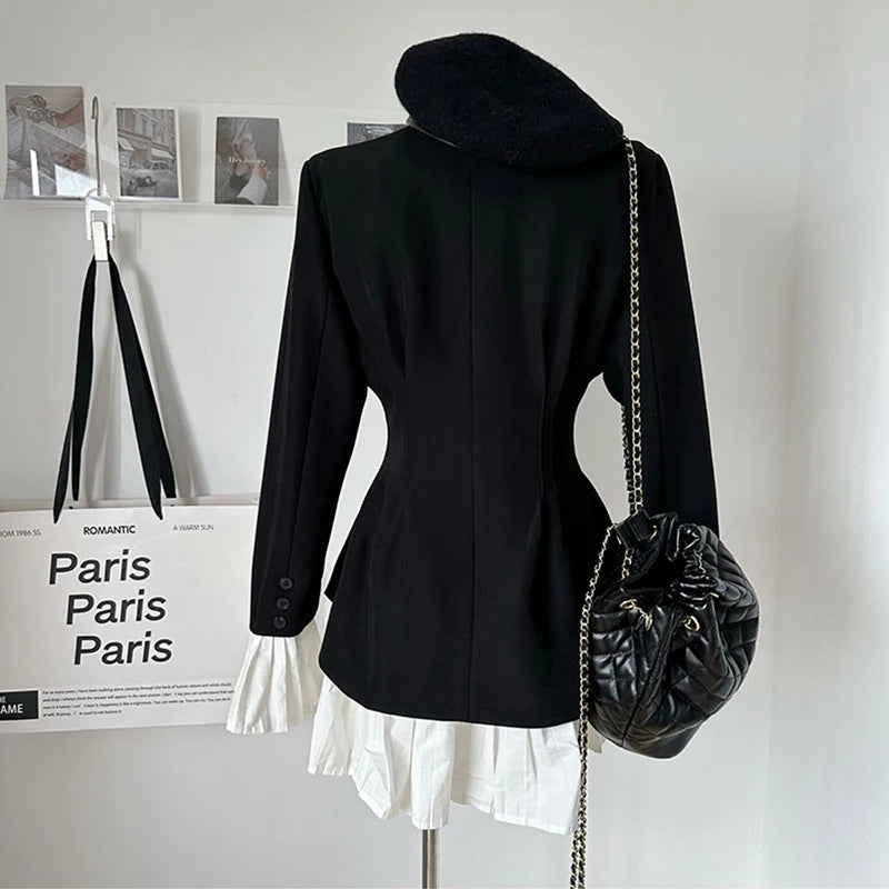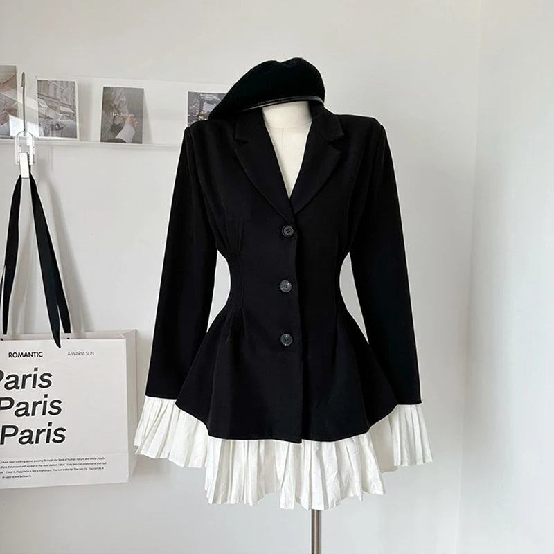 Bxoxo Korean Chic Patchwork Suit Mini Dress Women Autumn Fashion Bell Sleeve Stitching A Line Vestido Y2K Streetwear Party Night Dress