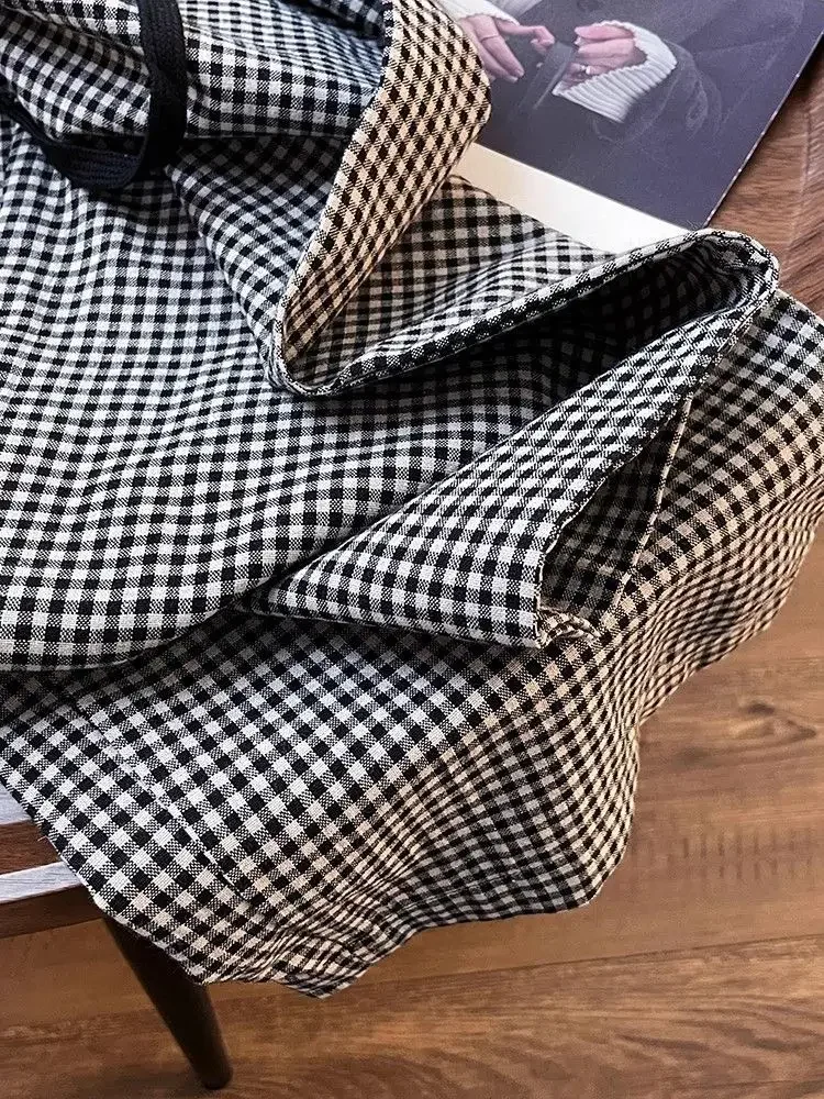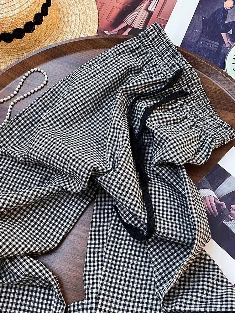 Bxoxo Korean Chic Plaid Casual Pants Women Summer High Waist Retro All Match Wide Leg Pants Y2K Loose Drawstring Straight Trousers