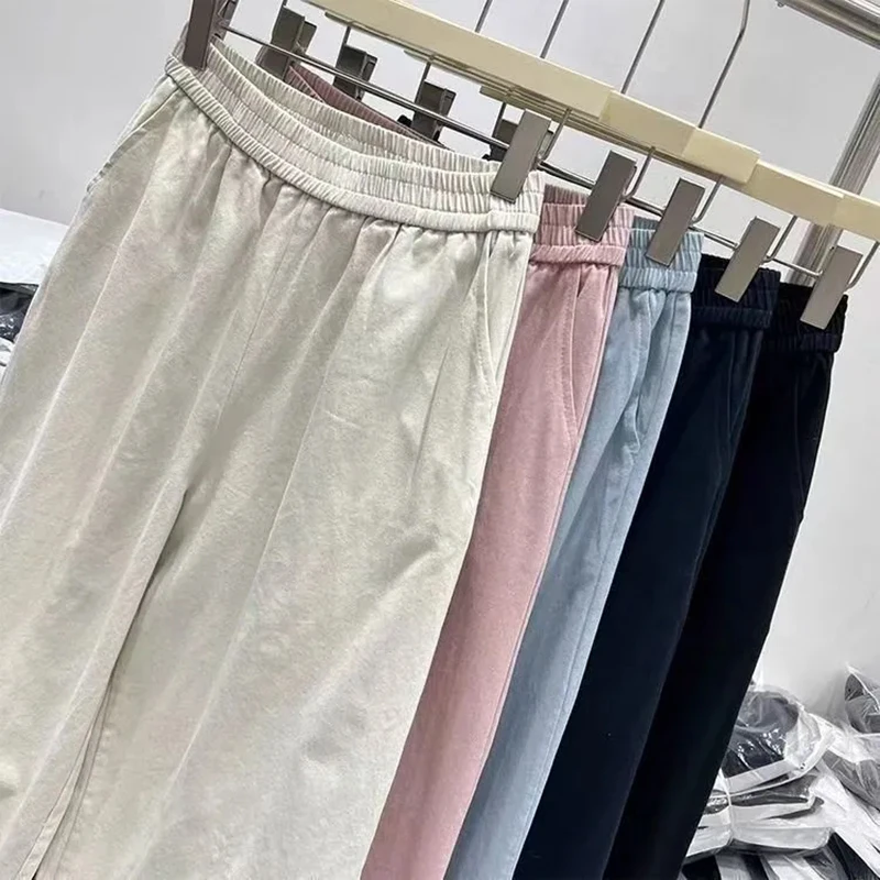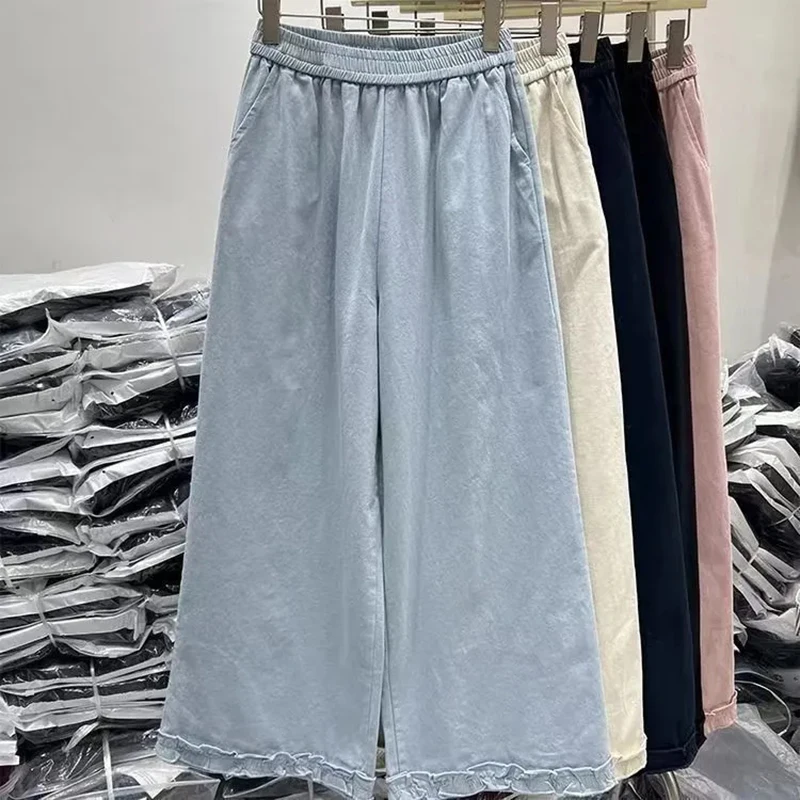 Bxoxo Korean Chic Ruffle Patchwork Ankle Length Pants Women Summer High Waist Loose Wide Leg Pants Elastic Waist Baggy Casual Trousers