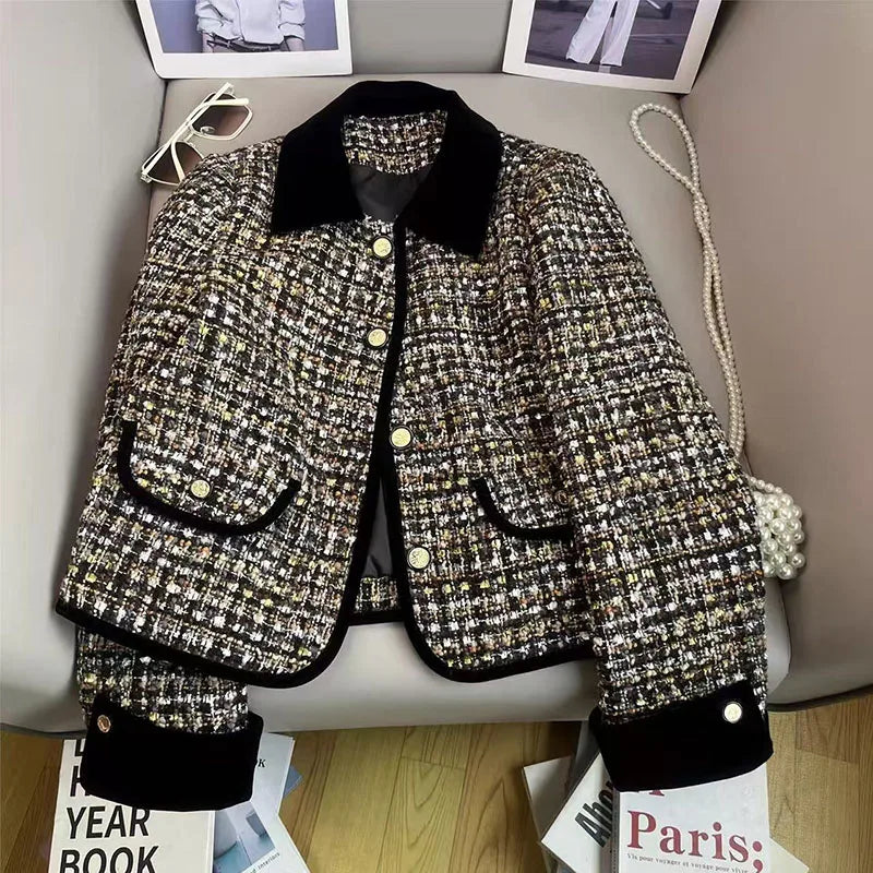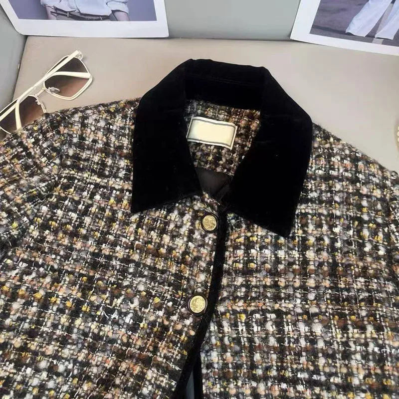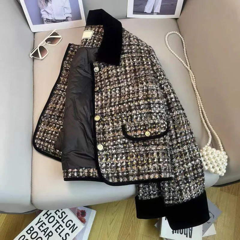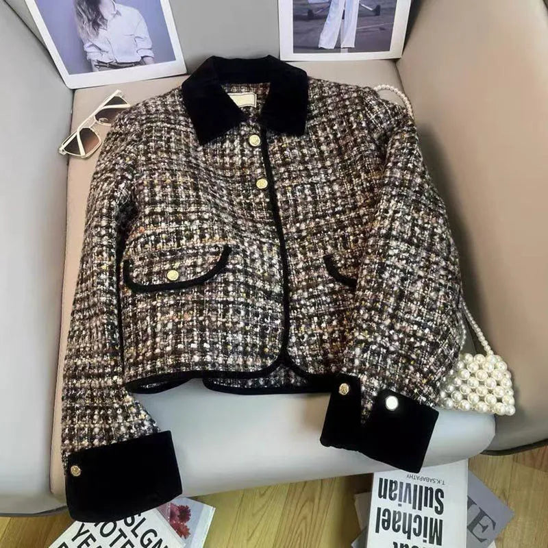 Bxoxo Korean Chic Tweed Coats Women Y2K Winter Loose Thick Warm Lapel Jacket Vintage Streetwear Single Breasted Blended Crop Outwear