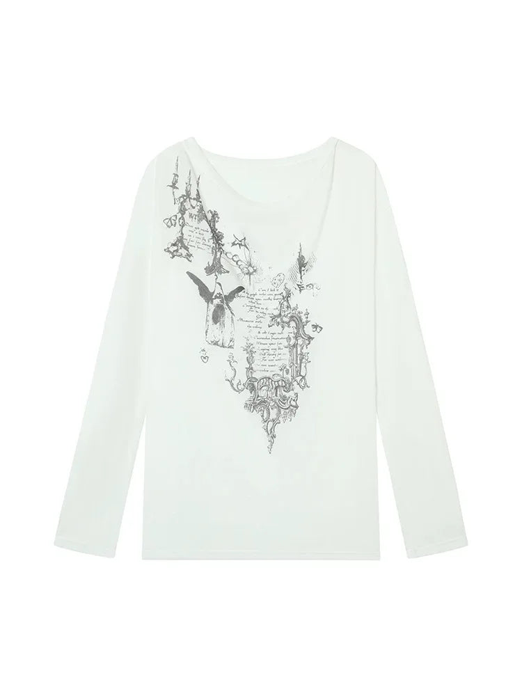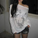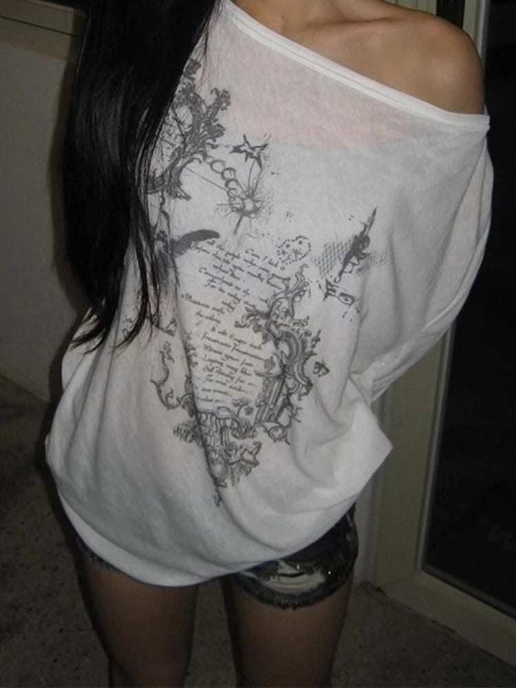 Bxoxo Korean Fashion Graphic Tees Women Transparent Vintage Gothic T Shirt Long Sleeve Loose Punk T-shirt Streetwear Tops