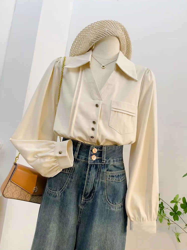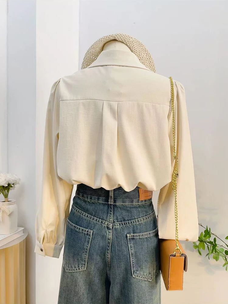 Bxoxo Korean Long Sleeve Shirt Women Autumn Loose Lapel Tops Harajuku Single Breasted Simple Basic All Match Ladies White Blouse