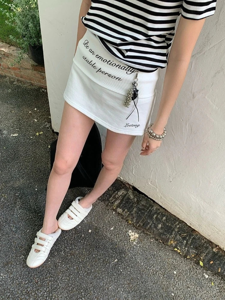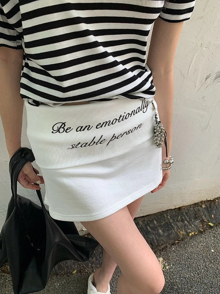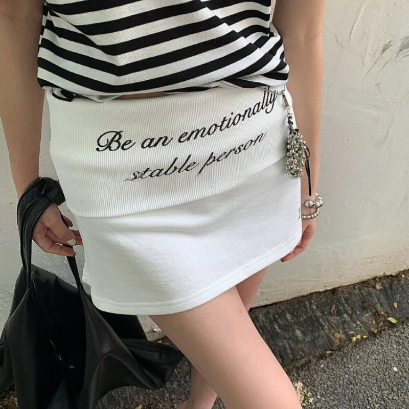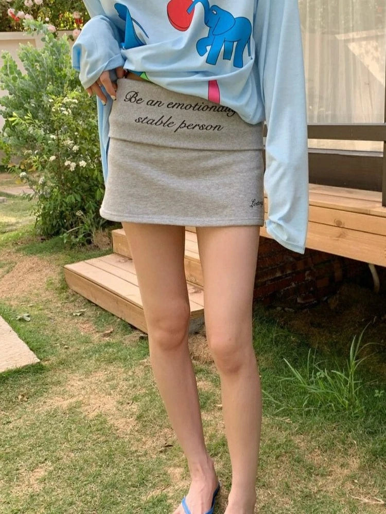 Bxoxo Korean Style Letter Print Mini Skirt Women Vintage Black Sexy Wrap Skirt Gray Y2k Casual Slim Up A-line Short Skirts