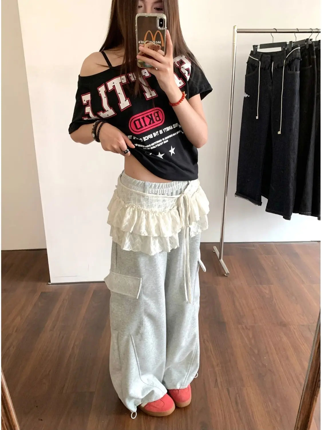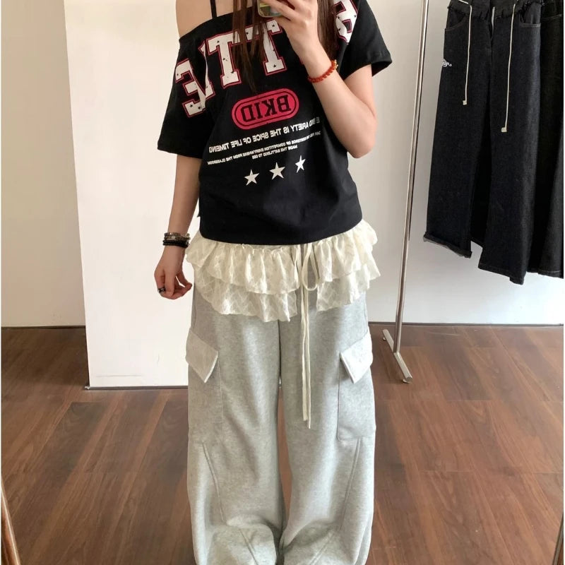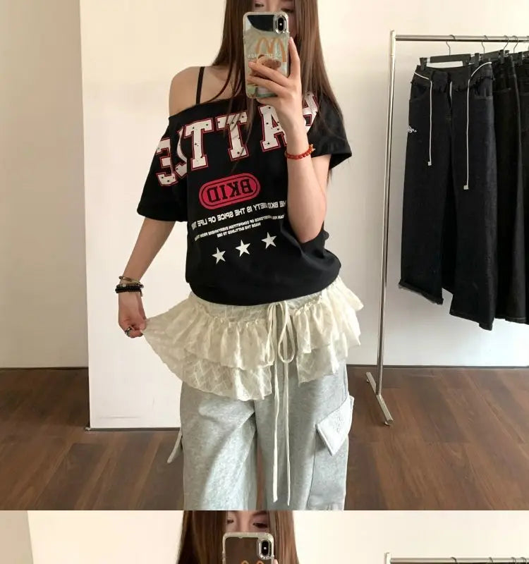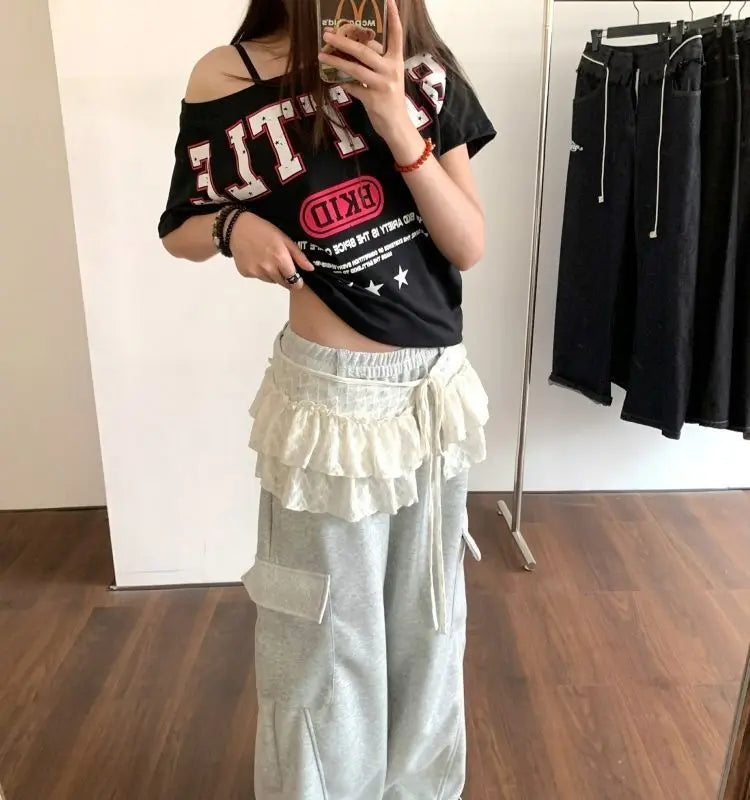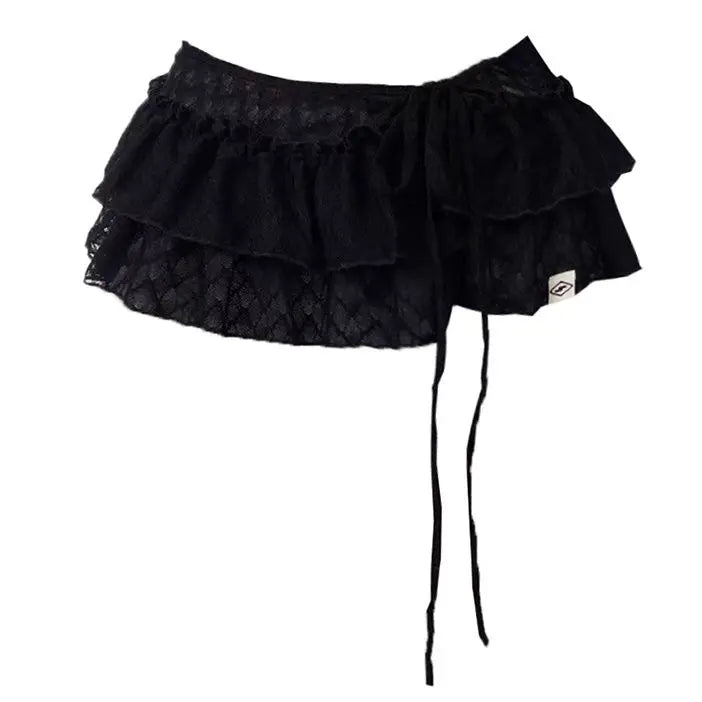 Bxoxo Korean Style Mini Skirts Women Harajuku Sweet Lace Up Short Skirts Cute High Waist Y2k Streetwear Black Ruffle Skirt