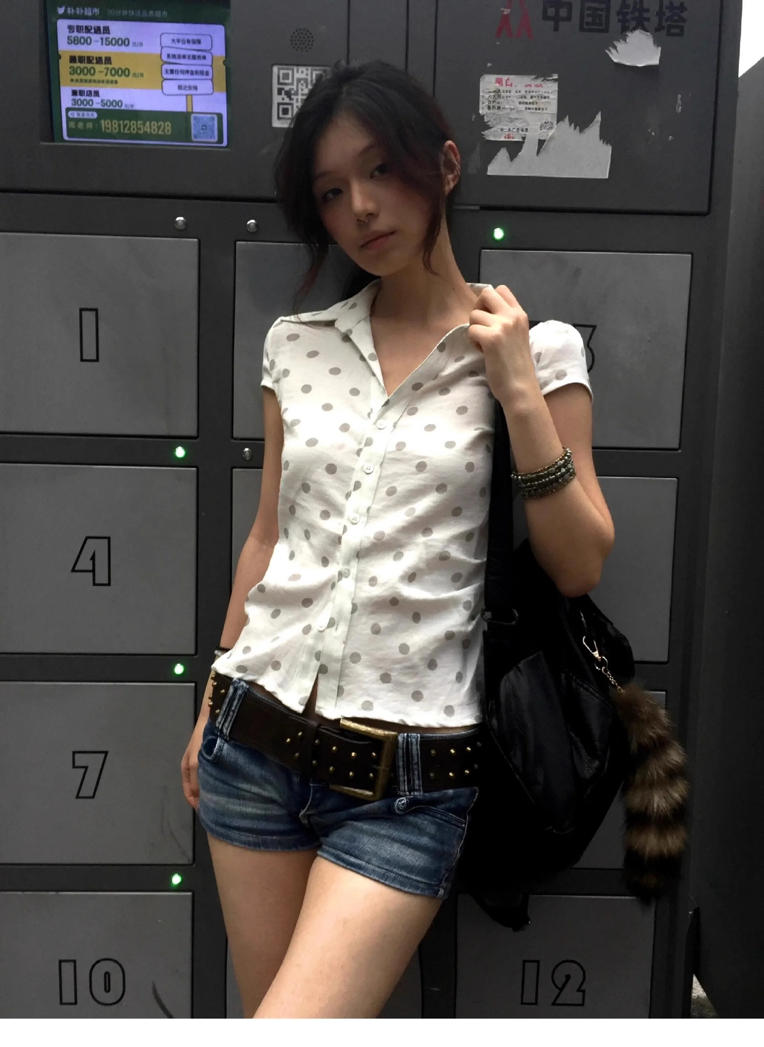 Bxoxo Korean Style Shirt And Blouse Polka Dots Short Sleeve Casual Shirt Y2k Japanese 2000s Retro Shirt Vintage Tops Outfit