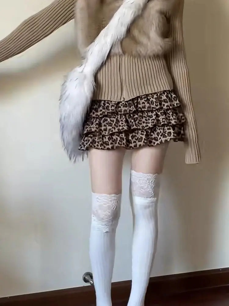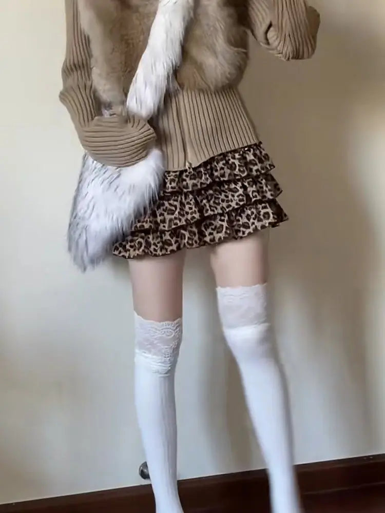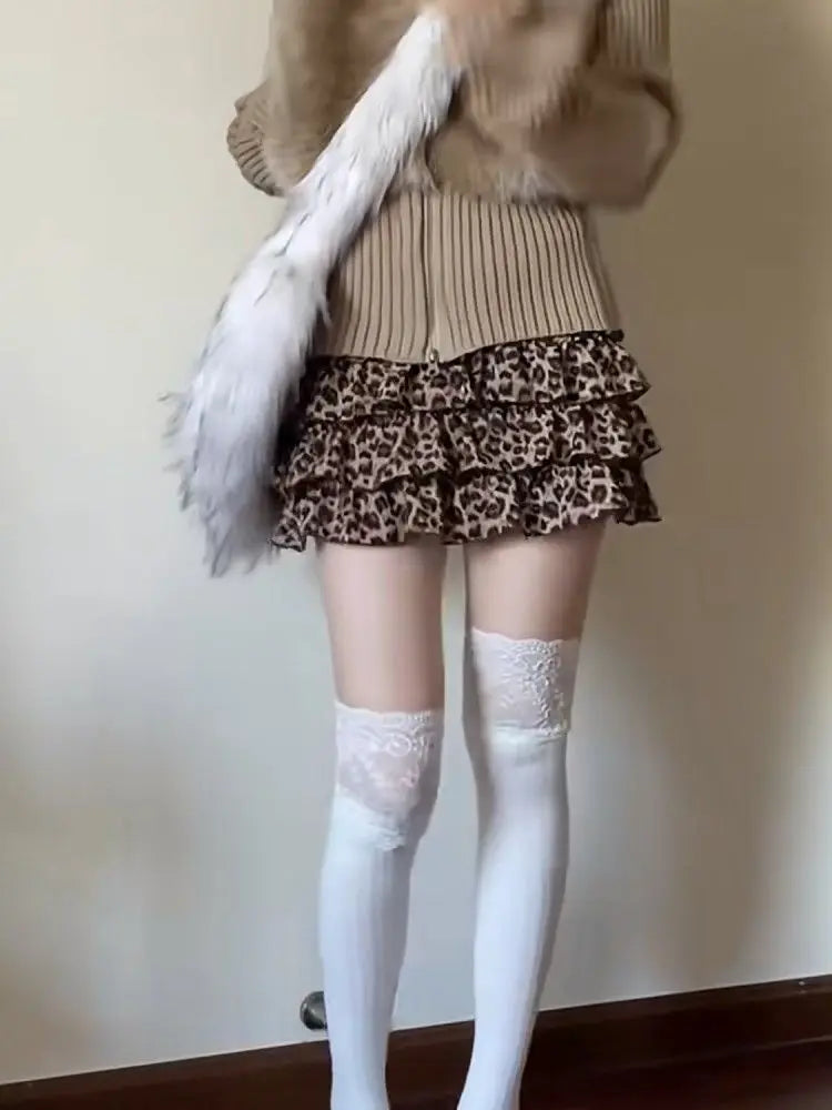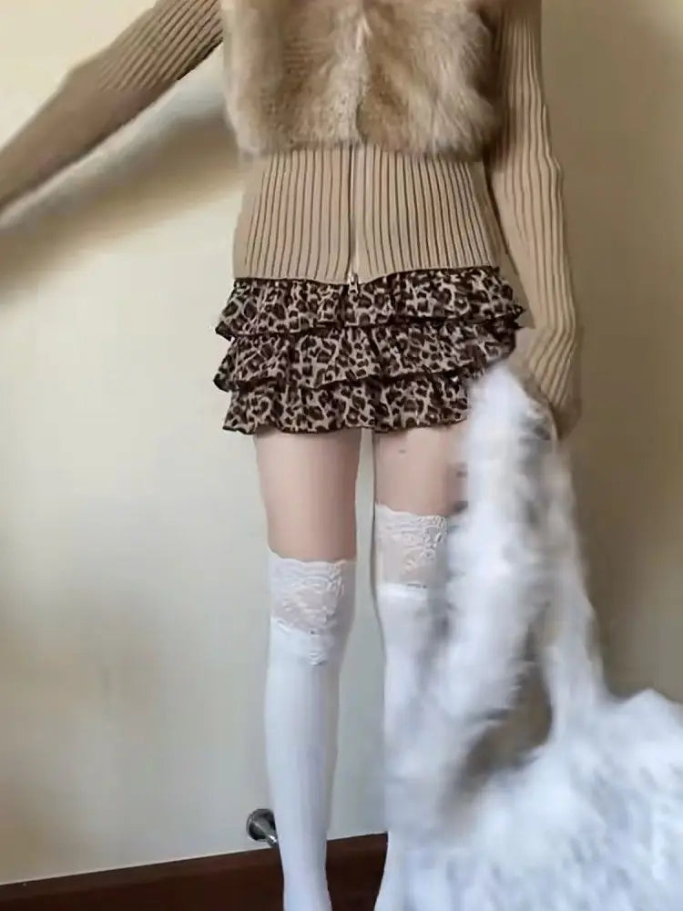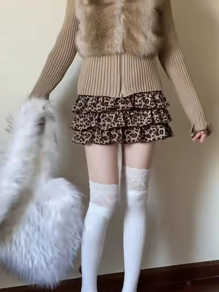 Bxoxo Leopard Print Sexy Mini Skirt Women Ruffle Y2k Vintage Harajuku Short Skirts Streetwear High Waist Layered Retro Skirt