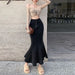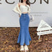 Bxoxo Long Denim Skirt for Women High Waist Autumn Blue Slim Jean Fishtail Skirt Korean Fashion Skinny Solid Elastic Slit Skirt Women