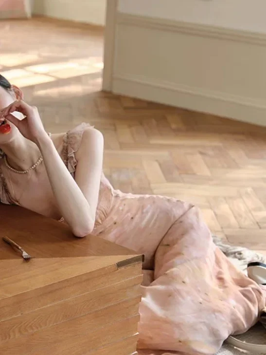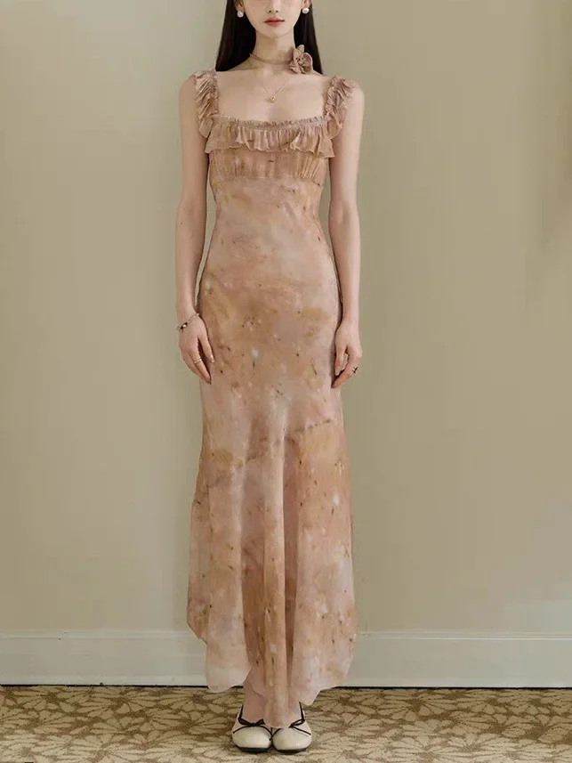 • Unique Design : Featuring a midsummer oil painting series, this dress stands out with its high-set oblique cut and French printed sling design.