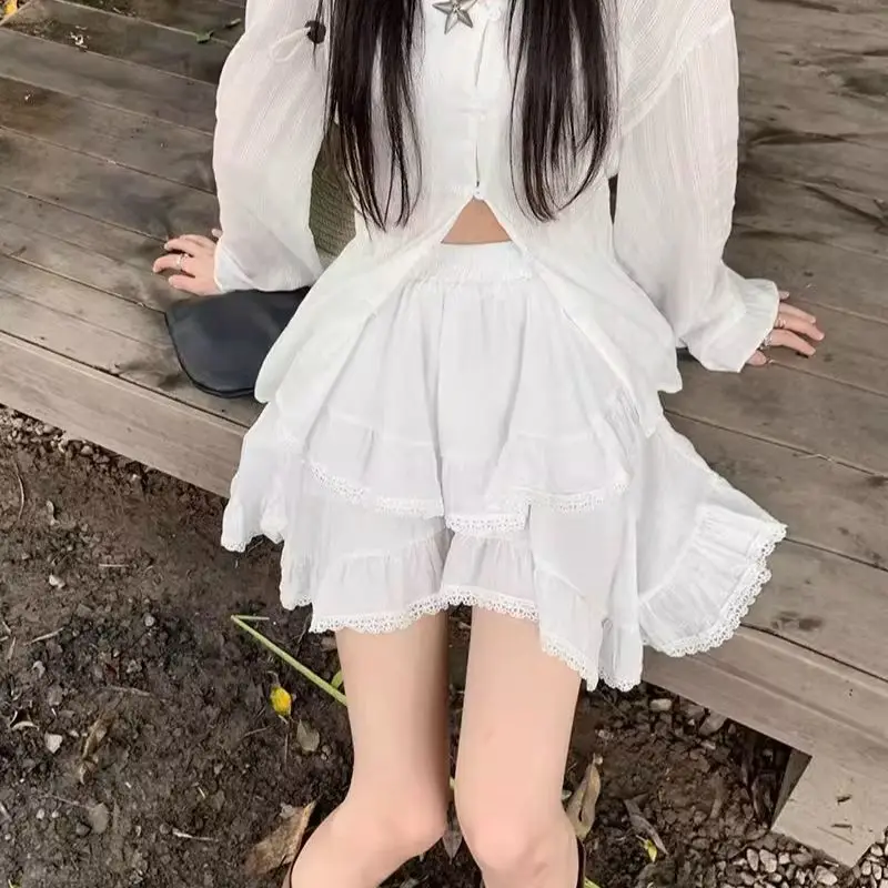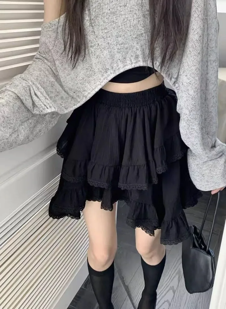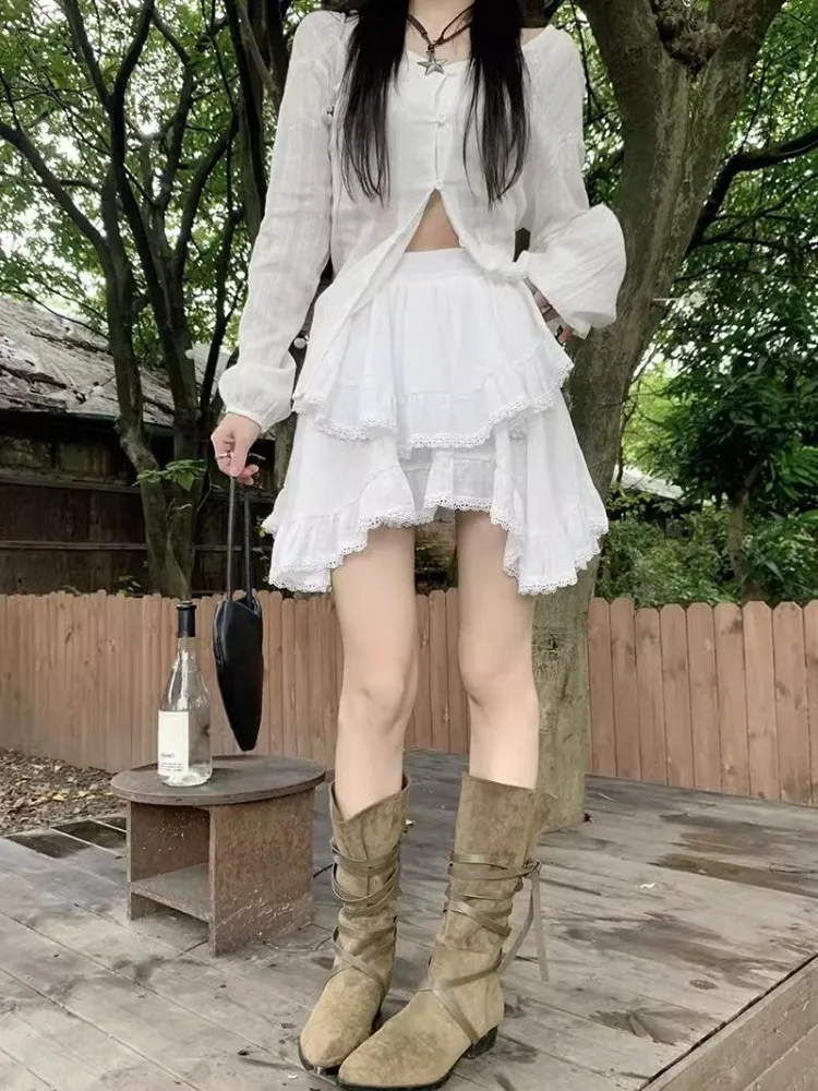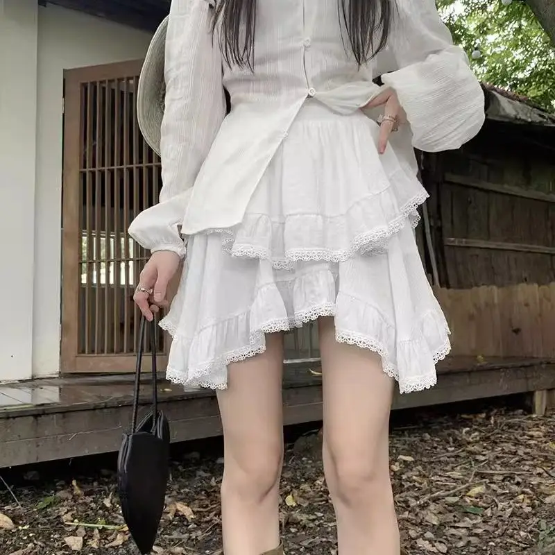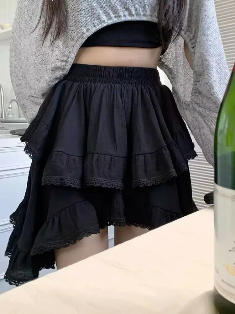 BXOXO Mini Skirts Women Irregular Lace Patchwork Ruffles Stretch High Waist 2025 Summer Fashion Sweet Skirt Female Casual