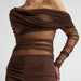 Bxoxo Multi-wear Mesh Sheer Crop Tops Korean Elegant Off the Shoulder T-shirt Chic Women Long Sleeves Slim Fit Cover-Ups Tees