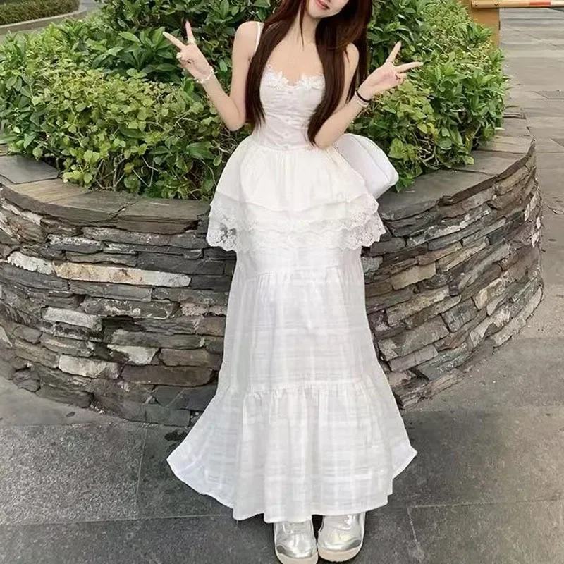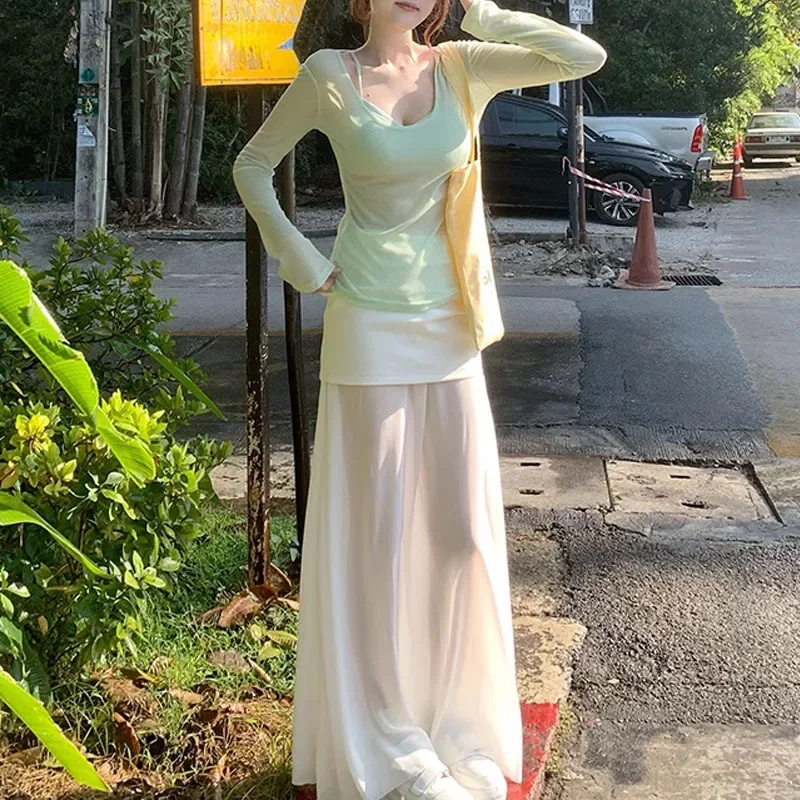 Bxoxo New 2025 Floral Bud Two-Piece Set Cold Tone Elegant Spring Halter Skirt Set Gentle Style Women's Cotton Floor-Length Skirt