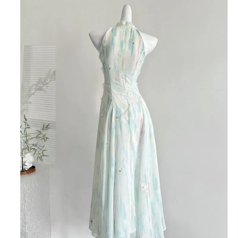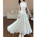 BXOXO New 2025 Jasmine Green 2.0 Summer Fairy Sweet Slimming Waist Long Dress Design Sense Skirt Polyester Fiber round Neckline Ankle-