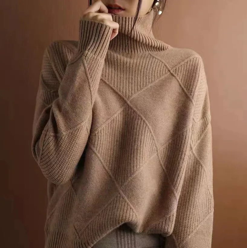 Bxoxo New UZZDSS High Necked Cashmere Plain Sweater Pullovers