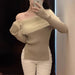 Bxoxo Off Shouder Sexy Sweaters Mink Cashmere Vintage Red Knitwear Top Jumper Y2k Clothes Pullover Pull Femme Black Sueter Mujer