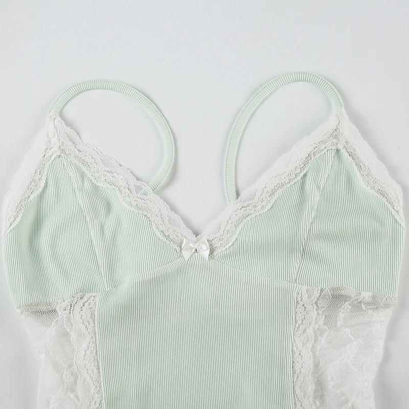 BXOXO Patchwork Spliced Lace V-Neck Women Camisole Tops Slim Fit Summer Design New Blouses
